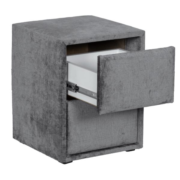 Нощно шкафче LINDA – светлосив (код 13) е стилно и функционално допълнение към всяка обзаведена спалня. Изработено от корпус от ПДЧ и облечено с висококачествена дамаска в светъл сив тон, то съчетава практичност и визуален уют. Моделът разполага с две чекмеджета, улесняващи достъпа. Компактните размери го правят идеален до леглото, а неговият изчистен дизайн се вписва без усилие в интериори в модерен стил.