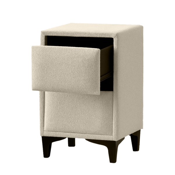 Нощното шкафче MATHILDA е стилно допълнение към серията, изработено от ПДЧ и облечено във висококачествена дамаска. Двете чекмеджета са с механизъм за плавно затваряне, а стабилните крака от полипропилен осигуряват необходимата височина за лесно почистване с прахосмукачка робот.