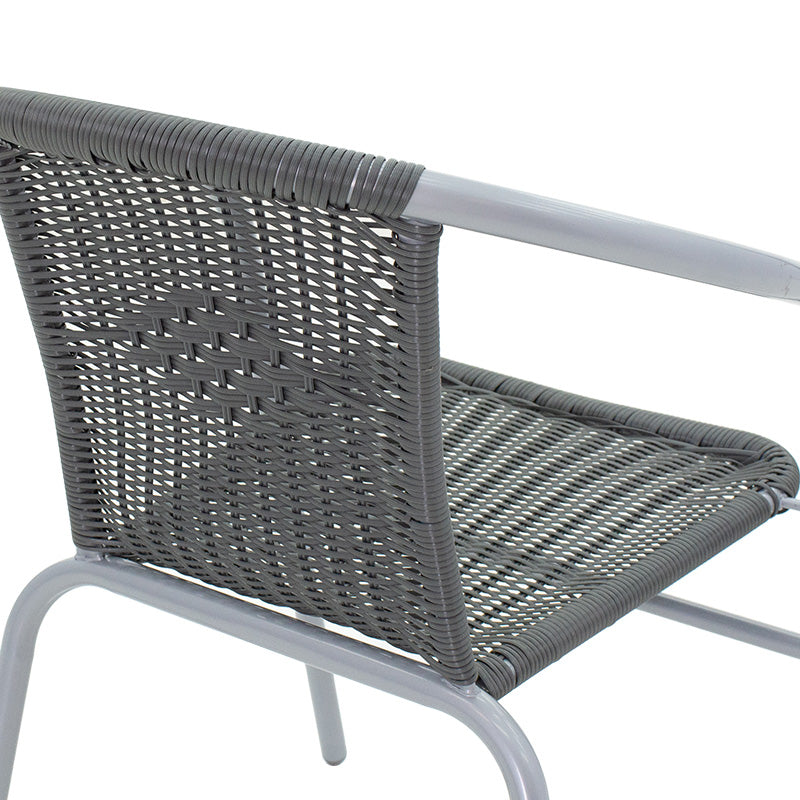 - Стабилна метална рамка с устойчивост на натоварване и износване. Корпусът на основната облегалка на седалката е изработен от висококачествен PE ратан. PE ратанът е вид екологичен синтетичен ратан, който може да се рециклира и е по-издръжлив от други видове.