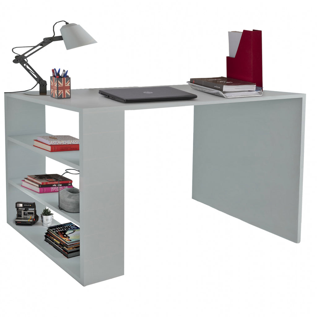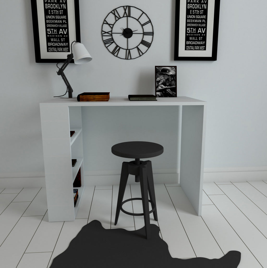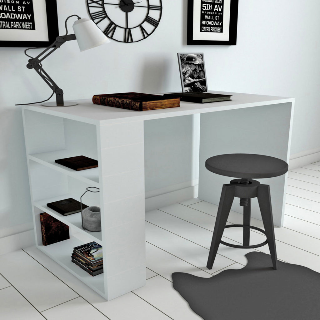 Меламинов плот в бяло и 3 рафта от лявата страна на бюрото в бяло.