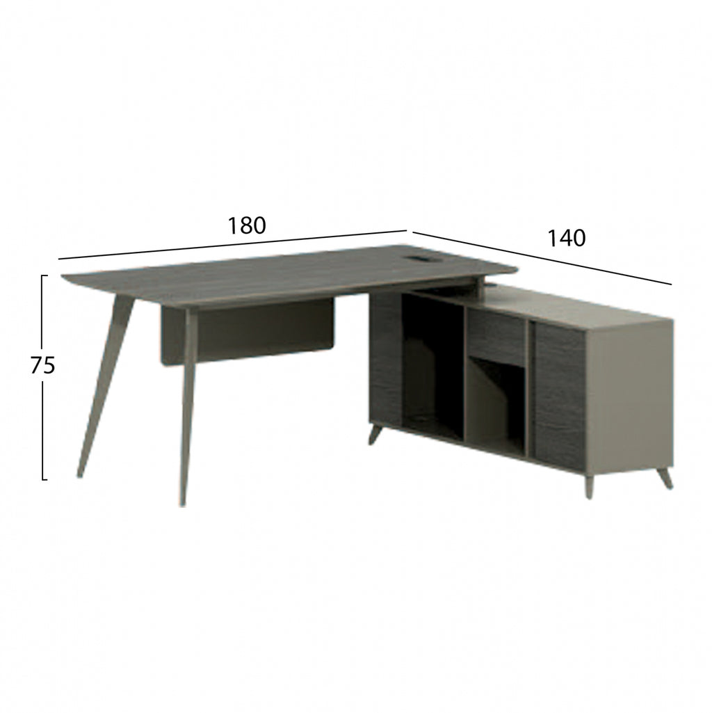Професионално бюро от серия Lux с обръщащ се ъгъл, изработено от висококачествен меламин, в нюанс мока и пепел. Разполага с шкаф с вътрешен рафт, чекмедже и две отворени места за съхранение. Професионалната мебелна линия Lux Series е създадена, за да улови класическия стил в модерното. Продуктите от серията касаят мебели с особена динамика поради формата си, тъй като придават престиж и безвремие на вашето работно място. Бюрото е най-обикновената мебел, изберете го правилно, за да ви служи повече, тъй като ще прекарвате върху него по няколко часа всеки ден. Размери: 180x140x75H см. Продуктът се доставя в несглобен вид, във фабрична опаковка с подробна инструкция за сглобяване.