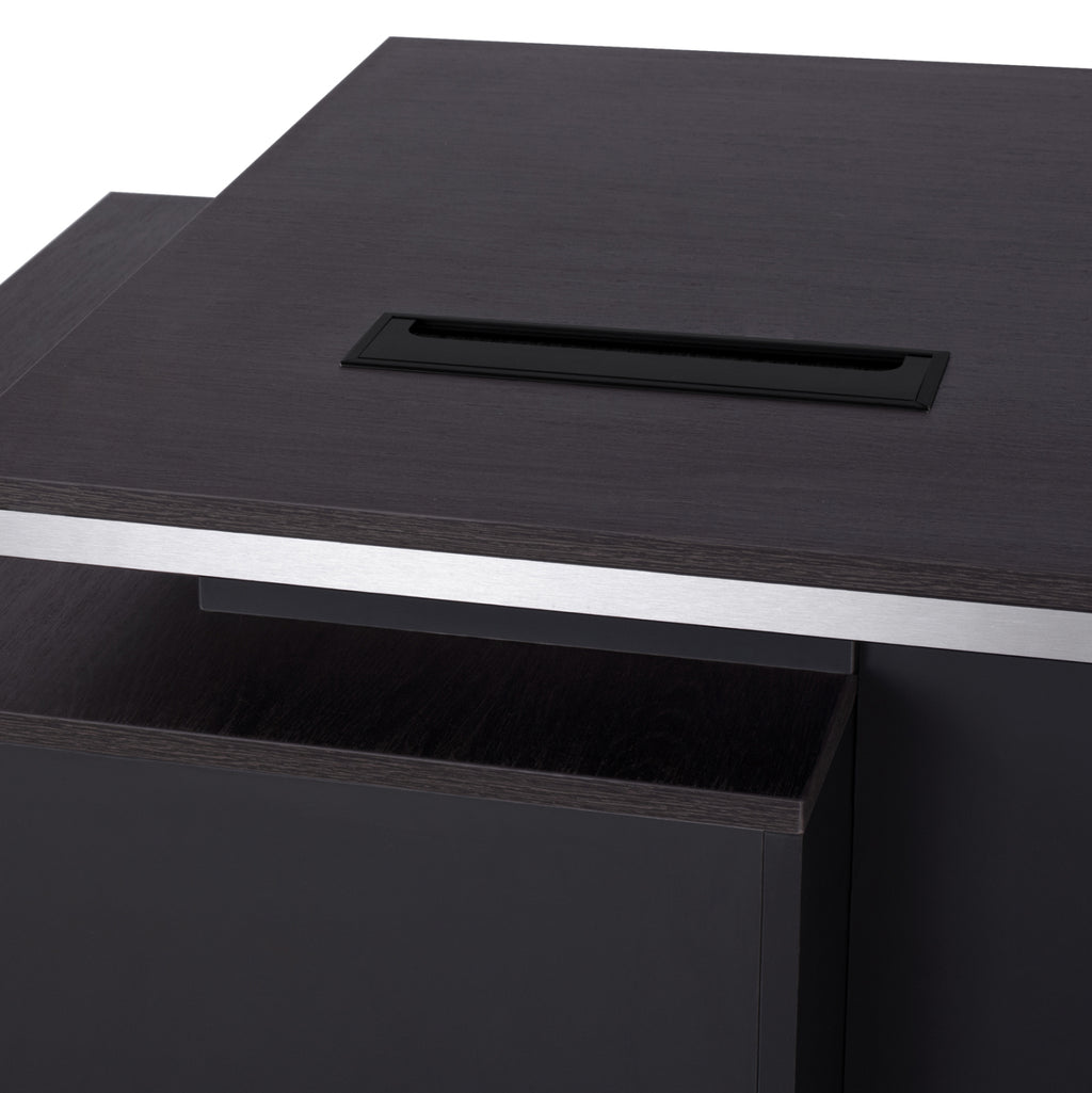 Това професионално офис бюро разполага с десен шкаф, който осигурява дискретно пространство за съхранение на документи, книги и материали. Допълнителното чекмедже е удобно за канцеларски принадлежности, а отворената ниша позволява бърз достъп до често използвани вещи. Така работното място остава винаги подредено и организирано.
