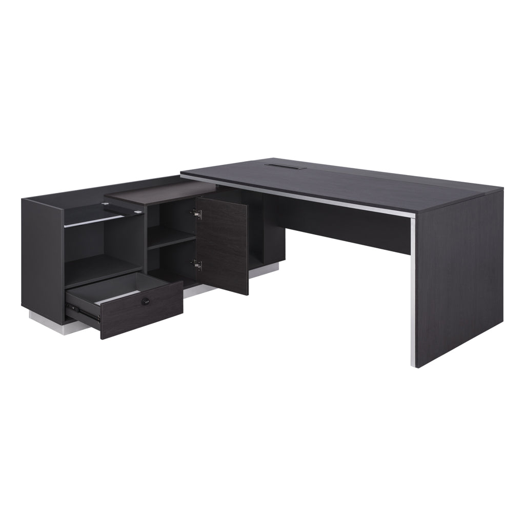 Професионално бюро с ляв ъгъл, изработено от висококачествен меламин, в сив и бежов цвят. Разполага с шкаф с вътрешен рафт, чекмедже и две отворени места за съхранение. Бюрото е най-обикновената мебел, изберете го правилно, за да ви служи повече, тъй като ще прекарвате върху него по няколко часа всеки ден. Размери на ъгъл: 200x160x76H см. Работна повърхност: 180x80x76Y cm. Шкаф: 40x160x64 - 69Y см. Продуктите се предлагат насипно в пакети.