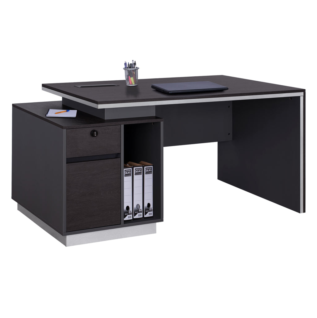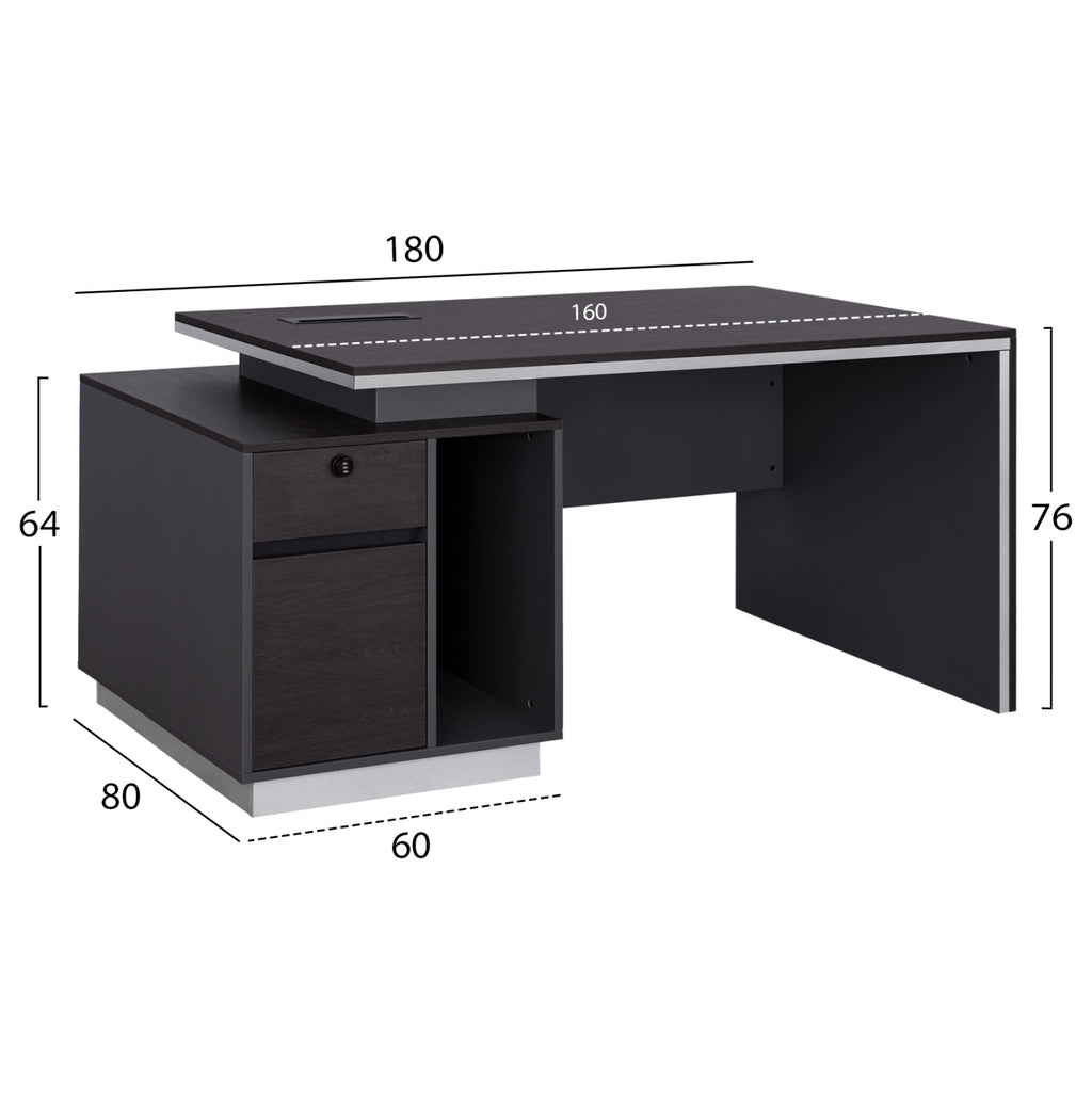 Професионално бюро с шкаф от лявата страна, изработено от висококачествен меламин, в сив и бежов цвят. Разполага с шкаф, чекмедже и отворено място за съхранение. Бюрото е най-обикновената мебел, изберете го правилно, за да ви служи повече, тъй като ще прекарвате върху него по няколко часа всеки ден. Размери: 180х80х76см. Продуктът се доставя в несглобен вид, във фабрична опаковка с инструкция за сглобяване.