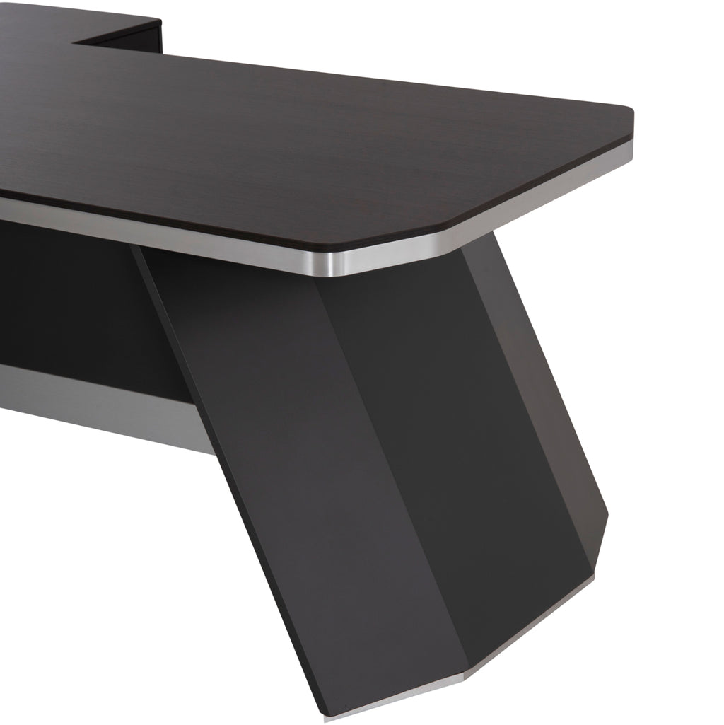 Професионално бюро с прав ъгъл, изработено от висококачествен меламин, в сив и бежов цвят. Разполага с шкаф с плъзгаща се врата и вътрешен рафт, чекмедже и отворени места за съхранение. Бюрото е най-обикновената мебел, изберете го правилно, за да ви служи повече, тъй като ще прекарвате върху него по няколко часа всеки ден. Размери: 220x180x76H см. Места за съхранение: отдясно. 39x33x10H см.---40x46x27H см.---40x48x58H см.---25-45x48x58H см. Работна повърхност: 200х97 см. Шкаф: 180х50х63см. Продуктът се доставя в несглобен вид, във фабрична опаковка с подробна инструкция за сглобяване.