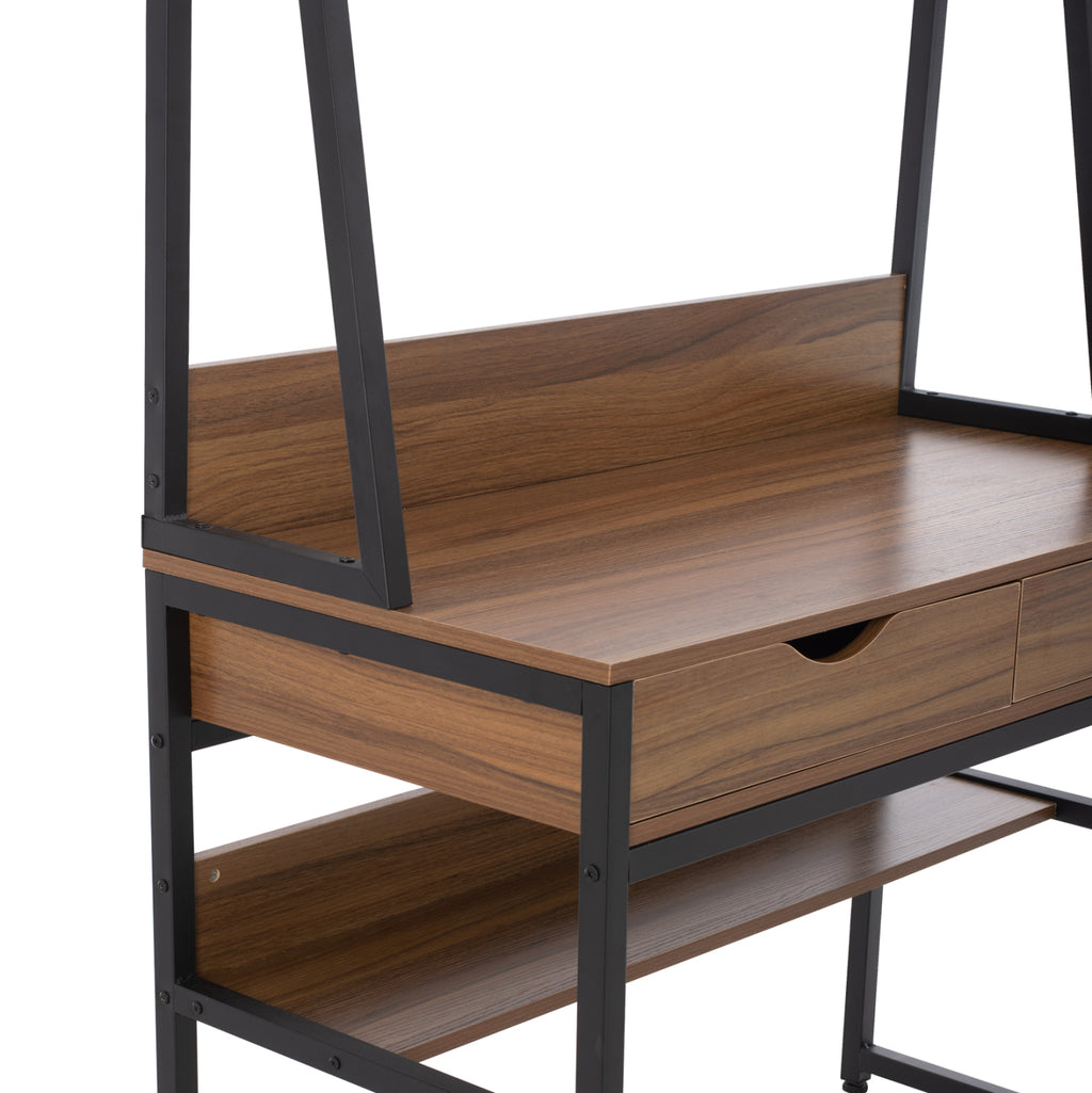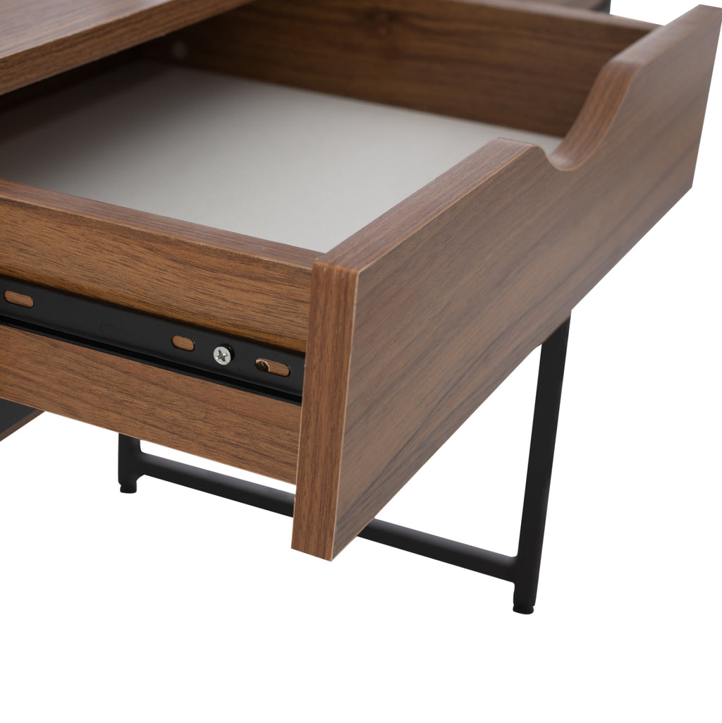 Бюрото TANAYA е практично и красиво предложение, както за вашия дом, така и за вашето бизнес пространство. ЧЕРНАТА рамка с цвят ОРЕХ върху повърхностите е комбинация, която наистина изпъква мебелите в стаята. Това бюро е с две чекмеджета в цвят ОРЕХ и отворен рафт в долната част. Но най-важната част от това бюро е, че има малка библиотека, поставена с допълнителна рамка над основната повърхност. Тази библиотека е по същество рафт, разделен на 3 пространства, и придава гъвкавост и лекота на ежедневна употреба. РАЗМЕРИ: 100x48x139Y см. Размери на повърхността на бюрото: 100x46x74 см. Размери на чекмеджето: 40x32x8.5H cm. Размери на долния рафт: 95x22x10H см. Размери на рафта за книги: 30.5x15.5x14H cm. Метални спецификации: 25x25mm КОНСТРУКТИВНИ МАТЕРИАЛИ: Рамката е метална с електростатично боядисване. Електростатичното боядисване е процес на сухо покритие, използван като метално покритие. Електростатичното боядисване е нанасяне на сух прах чрез електростатичен процес, който след това се „свързва“ към метала чрез топлина. Всичко останало е изработено от 15 мм меламин с отлично качество. Меламинът е вид дървесина под формата на ПДЧ. ПДЧ са продукти, които имат формата на плоча (панел). Като материал е много издръжлив и с голяма твърдост. Така че това е синтетичен материал с много твърда повърхност, което го прави много устойчив на драскотини, абразия и петна. ПОДДРЪЖКА: Меламинът, който е строителният материал, се почиства много лесно от петна благодарение на твърдата си повърхност. Можете да избършете всички повърхности с влажна кърпа и това е достатъчно. За упорити петна можете да използвате мек почистващ препарат. *Продуктът се доставя разглобен във фабрична опаковка с подробна инструкция за сглобяване. Препоръчваме сглобяване от 2 души. ** Цветопредаването на продукта може леко да се различава от неговото фотографско представяне на вашия екран.
