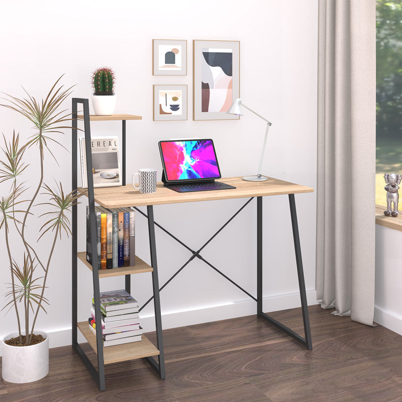 Комбинацията от цвят дъб и черна метална рамка придава на офис бюро Deckstor модерен и елегантен вид, който лесно се вписва в различни интериорни решения. Независимо дали ще бъде поставено в домашен офис, ученическа стая или корпоративна среда, то ще допълни визията на помещението по стилен начин.