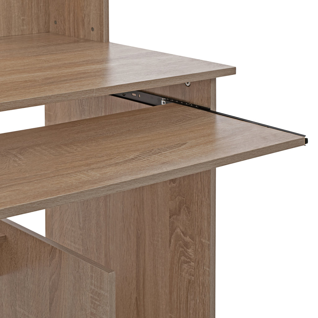 Бюрото Μ2032.02 е качествено и "пълно" предложение за вашето бизнес пространство или за вашия домашен офис. Цветът сонома прави мебелите доминиращи в пространството. Отличната конструкция гарантира, че ще се наслаждавате на всичките си работни часове, които знаем, че са много! Все пак бюрото е най-елементарната мебел за такава работа и трябва да го избирате внимателно. ΜΜ2032.02 е композиция, която има шкаф от лявата страна, чекмедже и чекмедже за клавиатура под повърхността. От дясната долна страна има готова стойка за компютър с отворен гръб за лесно свързване на кабели. Горната част на композицията е етажерката с 9 отделни отворени пространства за книги или всичко друго, което искате да имате на бюрото си! РАЗМЕРИ: 120Х55Х182см Размери на чекмеджето: 28х35х9,5см. Размери на шкафа: 33х47х53,5см. Размери на повърхността на клавиатурата: 78x30x7.5 cm. Размери на долния рафт: 53x20x27 см. Размери на кула за съхранение (PC): 24x50x57 см. Разстояние между краката: 53x30 см. МАТЕРИАЛИ НА ИЗРАБОТКА: Цялата композиция е изработена от меламин с отлично качество. Меламинът е вид дървесина под формата на ПДЧ. ПДЧ са продукти, които имат формата на плоча (панел) и се получават от заваряване чрез пресоване на малки парчета дърво (обикновено ела, бук, смърч и др.) с помощта на различни смолисти течности. След това ПДЧ се покрива, обикновено със синтетични материали като хартиени листове (меламини). Като материал е много издръжлив и с голяма твърдост. Така че това е синтетичен материал с много твърда повърхност, което го прави много устойчив на драскотини, абразия и петна. ПОДДРЪЖКА: Меламинът, който е строителният материал, се почиства много лесно от петна благодарение на твърдата си повърхност. Можете да избършете всички повърхности с влажна кърпа и това е достатъчно, за да изглежда вашето легло отново като ново. За упорити петна можете да използвате мек почистващ препарат. ПРЕДИМСТВА: •Здрава конструкция •Качествени материали •Големи размери •Естетически красива композиция •Идеален както за бизнес помещения, така и за дома •Лесен монтаж с инструкции на опаковката (препоръчваме монтаж от 2 човека) *Продуктът се доставя разглобен във фабрична опаковка.