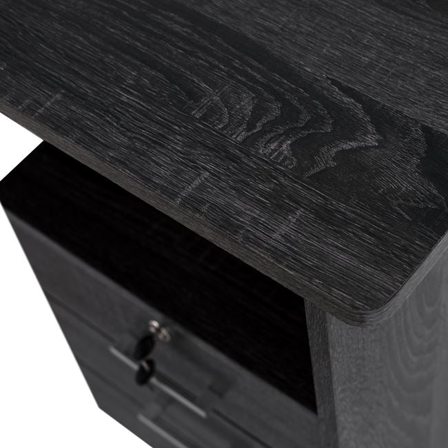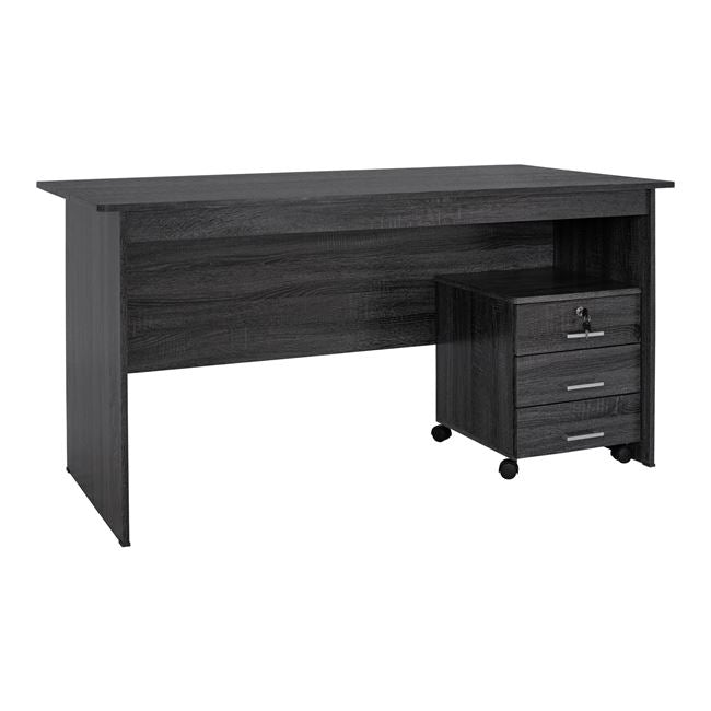 Офис комплект от 2 части, състоящ се от меламиново бюро с елегантен и семпъл дизайн, изработено от здрав меламин в цвят антрацит и офис скрин в цвят антрацит, с ключалка. Размери на бюрото: 150х71х74.5см. Размери на скрина: 39х39,5х46,5см. Продуктът се предлага разглобен в опаковка.