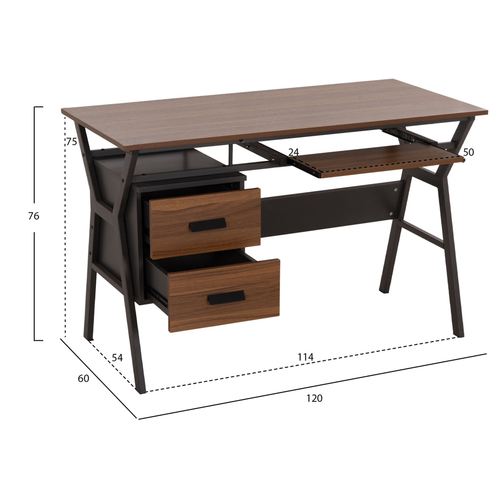 Бюро ВИТИНО е качествено и красиво предложение за вашето бизнес пространство или дом. СИВАТА матова рамка с повърхности от орех е комбинация, която наистина изпъква мебелите в пространството. Отличната му конструкция и размери гарантират, че ще се насладите на всичките си работни часове, които знаем, че са много! Все пак бюрото е най-елементарната мебел за такава работа и трябва да го избирате внимателно. VITINO е компактен и има две чекмеджета от дясната страна и чекмедже за компютърна клавиатура под основната повърхност. РАЗМЕРИ: 120X60X76H см. Размери на повърхността на плъзгащата се клавиатура: 50x24x8 cm. Размери на чекмеджето: 26x34x12.5см. x2 Разстояние на краката: 114x54 см. Височина на крака: 75 см. МАТЕРИАЛИ НА ИЗРАБОТКА: Рамката с краката на бюрото е метална. Всичко останало е изработено от висококачествен меламин. Меламинът е вид дървесина под формата на ПДЧ. ПДЧ са продукти, които имат формата на плоча (панел) и се получават от заваряване чрез пресоване на малки парчета дърво (обикновено ела, бук, смърч и др.) с помощта на различни смолисти течности. След това ПДЧ се покрива, обикновено със синтетични материали като хартиени листове (меламини). Като материал е много издръжлив и с голяма твърдост. Така че това е синтетичен материал с много твърда повърхност, което го прави много устойчив на драскотини, абразия и петна. ПОДДРЪЖКА: Меламинът, който е строителният материал, се почиства много лесно от петна благодарение на твърдата си повърхност. Можете да избършете всички повърхности с влажна кърпа и това е достатъчно, за да изглежда бюрото ви отново като ново. За упорити петна можете да използвате мек почистващ препарат. ПРЕДИМСТВА: •Стабилна конструкция •Качествени материали •Идеален за по-малки пространства •Естетически красива конструкция •Идеален както за бизнес помещения, така и за дома •Лесен монтаж (препоръчваме монтаж от 2 човека) *Продуктът се доставя несглобен във фабрична опаковка с подробна инструкция за монтаж