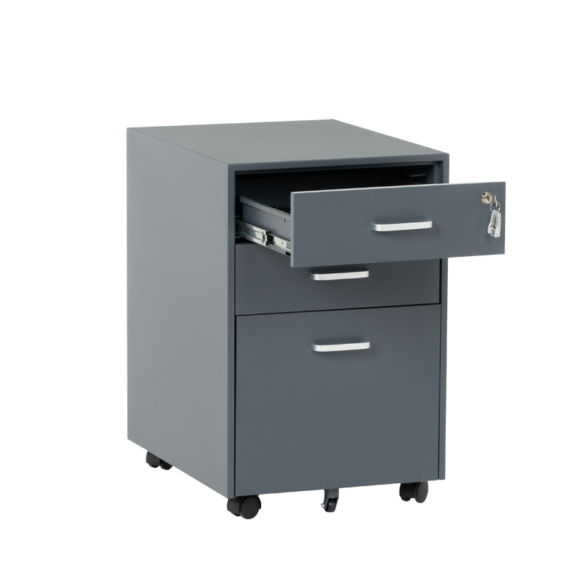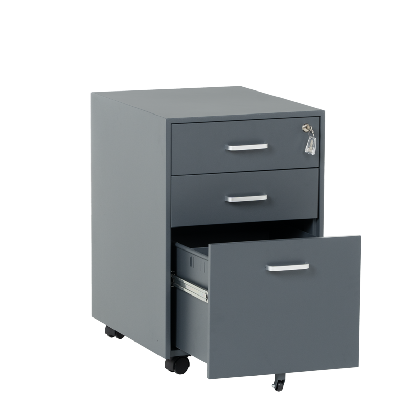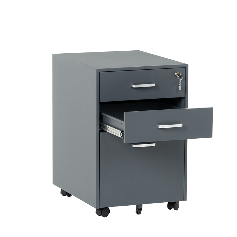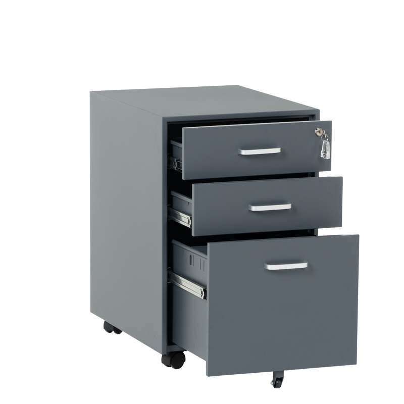 Офис контейнерът Carmen CR-1802 J SAND е метален шкаф тип кардекс с 3 чекмеджета с удобни дръжки и централно заключване. В основата на шкафа има колела за лесно придвижване при нужда. Контейнерът пристига сглобен, без необходимост от монтаж. Моделът е със система против накланяне, поради която чекмеджетата се отварят едно по едно (за да отворите едно, другите 2 трябва да са затворени).Пълна информация за размерите и характеристиките на модела ще намерите в таблицата в таб/поле "Техническа информация".