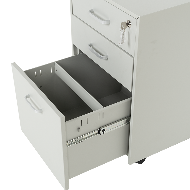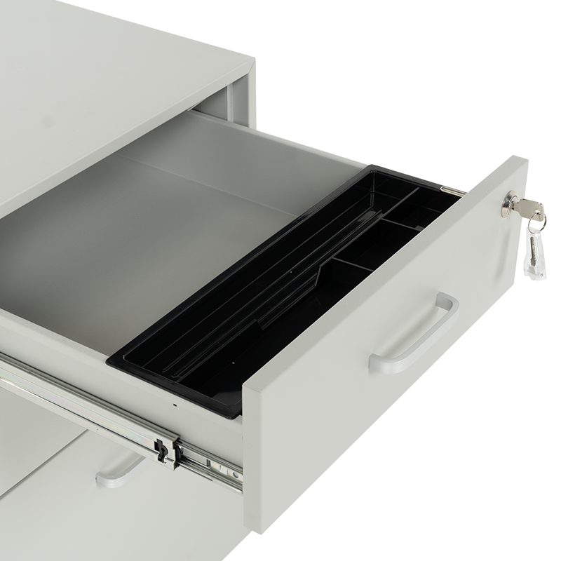 Офис контейнерът Carmen CR-1802 J SAND е метален шкаф тип кардекс с 3 чекмеджета с удобни дръжки и централно заключване. В основата на шкафа има колела за лесно придвижване при нужда. Контейнерът пристига сглобен, без необходимост от монтаж. Моделът е със система против накланяне, поради която чекмеджетата се отварят едно по едно (за да отворите едно, другите 2 трябва да са затворени).Пълна информация за размерите и характеристиките на модела ще намерите в таблицата в таб/поле "Техническа информация".