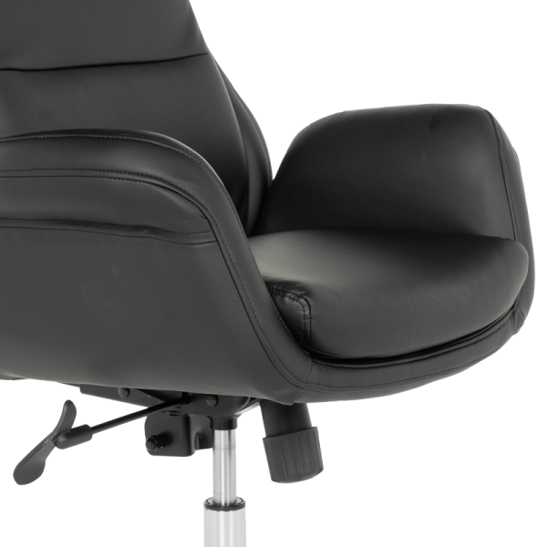 Създадено да впечатлява с визия и да осигурява удобство, офис кресло CARMEN 5011 е изработено от висококачествена еко кожа и предлага идеалния баланс между естетика и функционалност. Със своята висока облегалка с мек подглавник, широка седалка, удобни подлакътници и допълнителни функции, креслото осигурява ненадминат комфорт. Моделът разполага с люлеещ механизъм за регулиране на височината и хромирана основа. Пълна информация за размерите и характеристиките на модела ще намерите в таб/поле "Техническа информация".