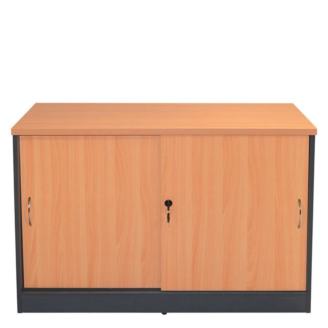 Страничен офис шкаф за професионална употреба Бук с плъзгащи врати и брава. Придайте на офиса си модерен стил с шкаф PRO Бук и останалите в тъмно сиво! Съхранявайте вашите книги, списания, класьори, компактдискове и DVD дискове вътре. Просторен и нисък, той пасва на всяка офис среда. Изработен от меламин с дебелина 25 мм за горната част, 16 мм за останалите части, 9 мм за гърба, издръжлив за ежедневна употреба. Има ключалка, 2 плъзгащи се врати и рафт вътре. Размери: Дължина 100 см Дълбочина 45 см Височина 69 см Допълва цялата серия PRO бюра и ъгли. Продуктът се предлага разглобен в опаковка.