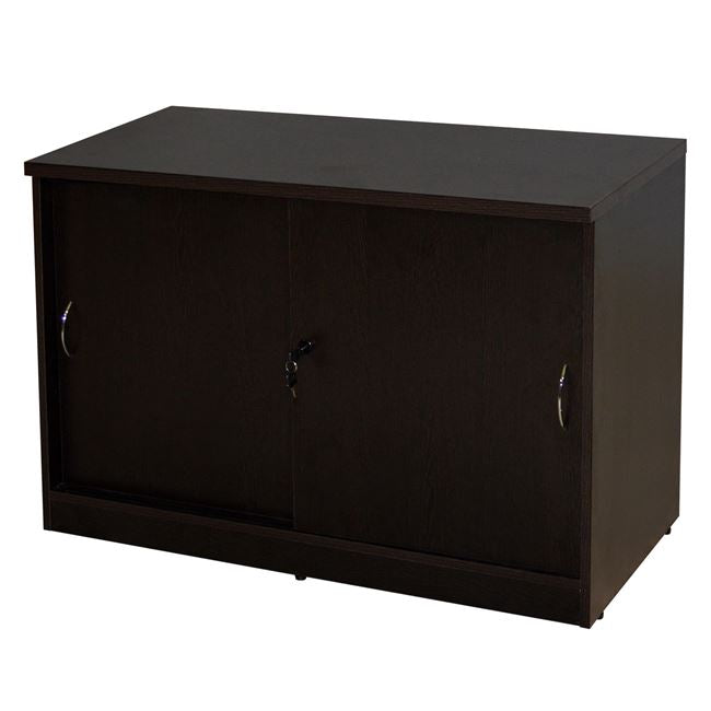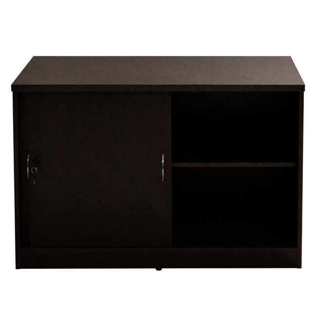 Страничен офис шкаф за професионална употреба Vege! Придайте на офиса си модерен стил с шкаф PRO Vege! Съхранявайте вашите книги, списания, класьори, компактдискове и DVD дискове вътре. Просторен и нисък, той пасва на всяка офис среда. Изработен от меламин с дебелина 25 мм за горната част, 16 мм за останалите части, 9 мм за гърба, издръжлив за ежедневна употреба. Има ключалка, 2 плъзгащи се врати и рафт вътре. Размери: Дължина 100 см Дълбочина 45 см Височина 69 см Завършва цялата серия PRO бюра и ъгли. Продуктът се предлага разглобен в опаковка.