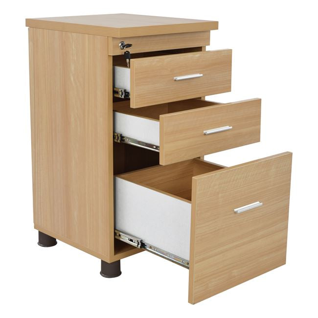 Офис скрин за професионална употреба, изработен от здрав меламин в цвят бук с ключалка за първите 2 чекмеджета, предназначен за съхранение на формуляри и ежедневните дребни предмети на вашия офис. Размери: 40х46х75см. Вътрешни размери на чекмеджета: 30x28x7.5Y см. Вътрешен размер на долното чекмедже: 30x28x9H cm. Забележки: Продуктът се доставя в несглобен вид, във фабрична опаковка.