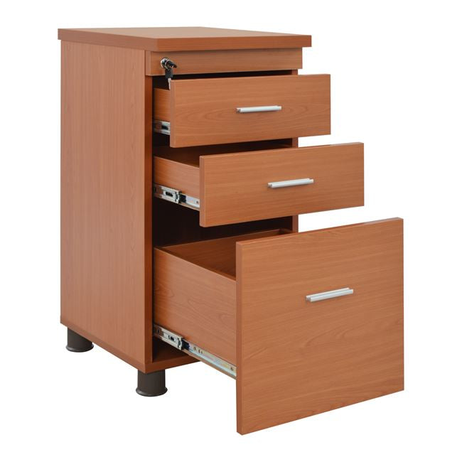 Офис скрин за професионално ползване, изработен от здрав меламин в черешов нюанс с ключалка за първите 2 чекмеджета, предназначен за съхранение на формуляри и ежедневните дребни предмети на вашия офис. Размери: 40х46х75см. Вътрешни размери на чекмеджета: 30x28x7.5Y см. Вътрешен размер на долното чекмедже: 30x28x9H cm. Забележки: Продуктът се доставя в несглобен вид, във фабрична опаковка.