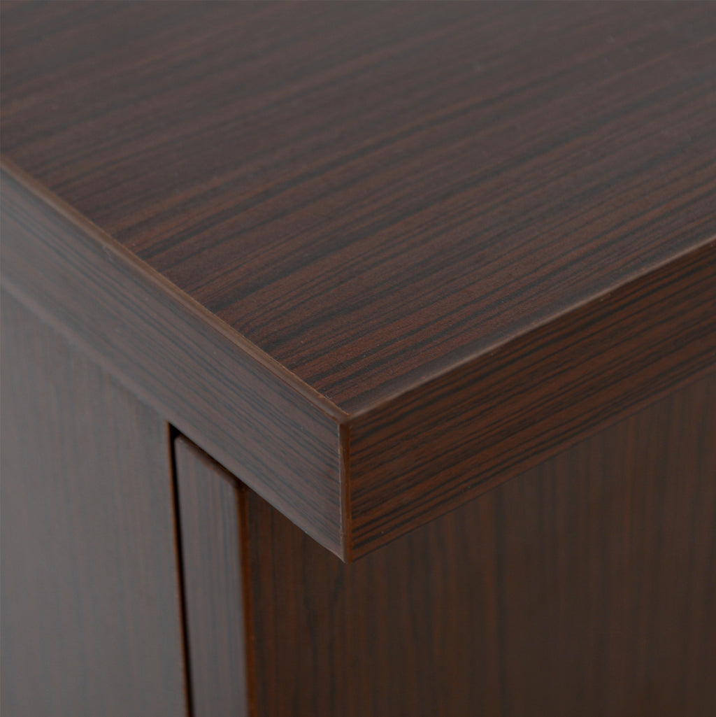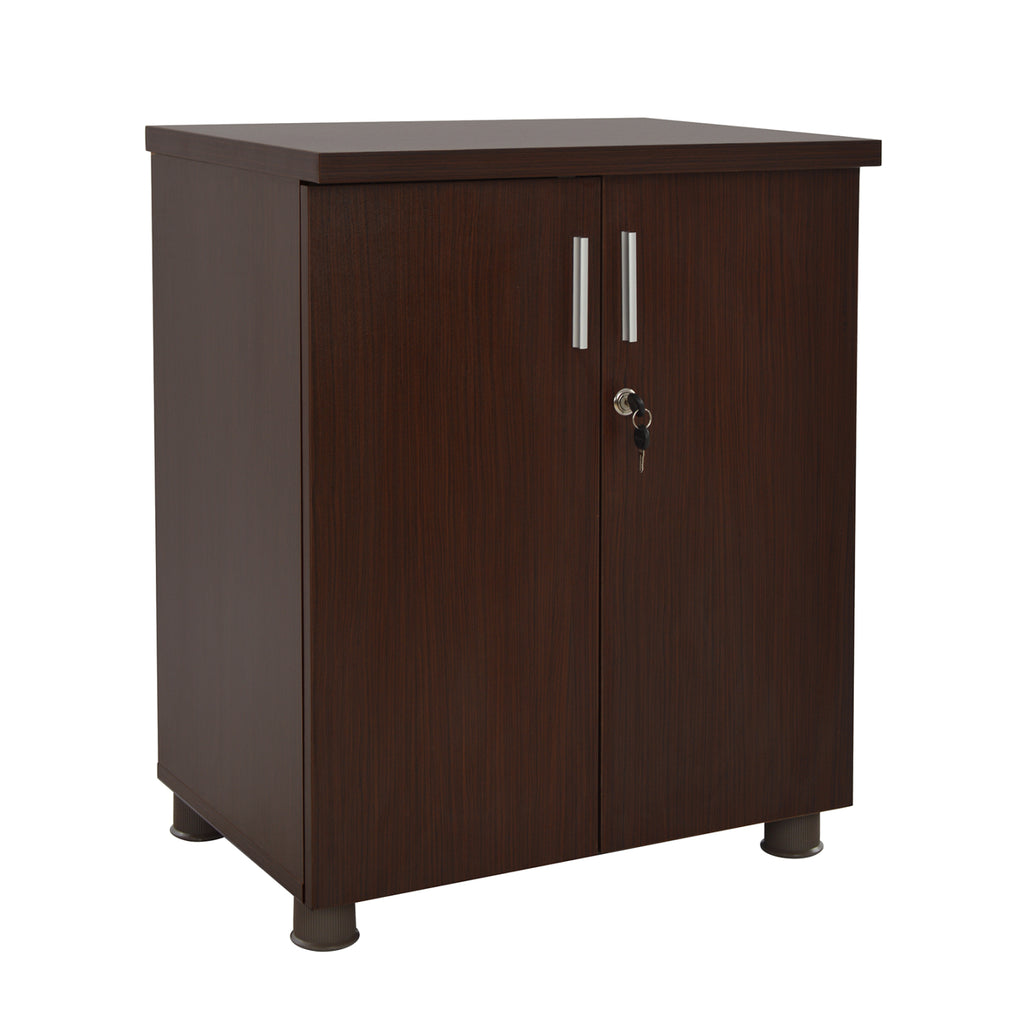 Офис шкаф за професионална употреба, изработен от здрав меламин в цвят венге с две врати, ключалка и вътрешен рафт, за съхранение на формуляри и ежедневните дребни предмети на вашия офис. Размери: 60х46х75см. Забележки: Продуктът се доставя в несглобен вид, във фабрична опаковка.