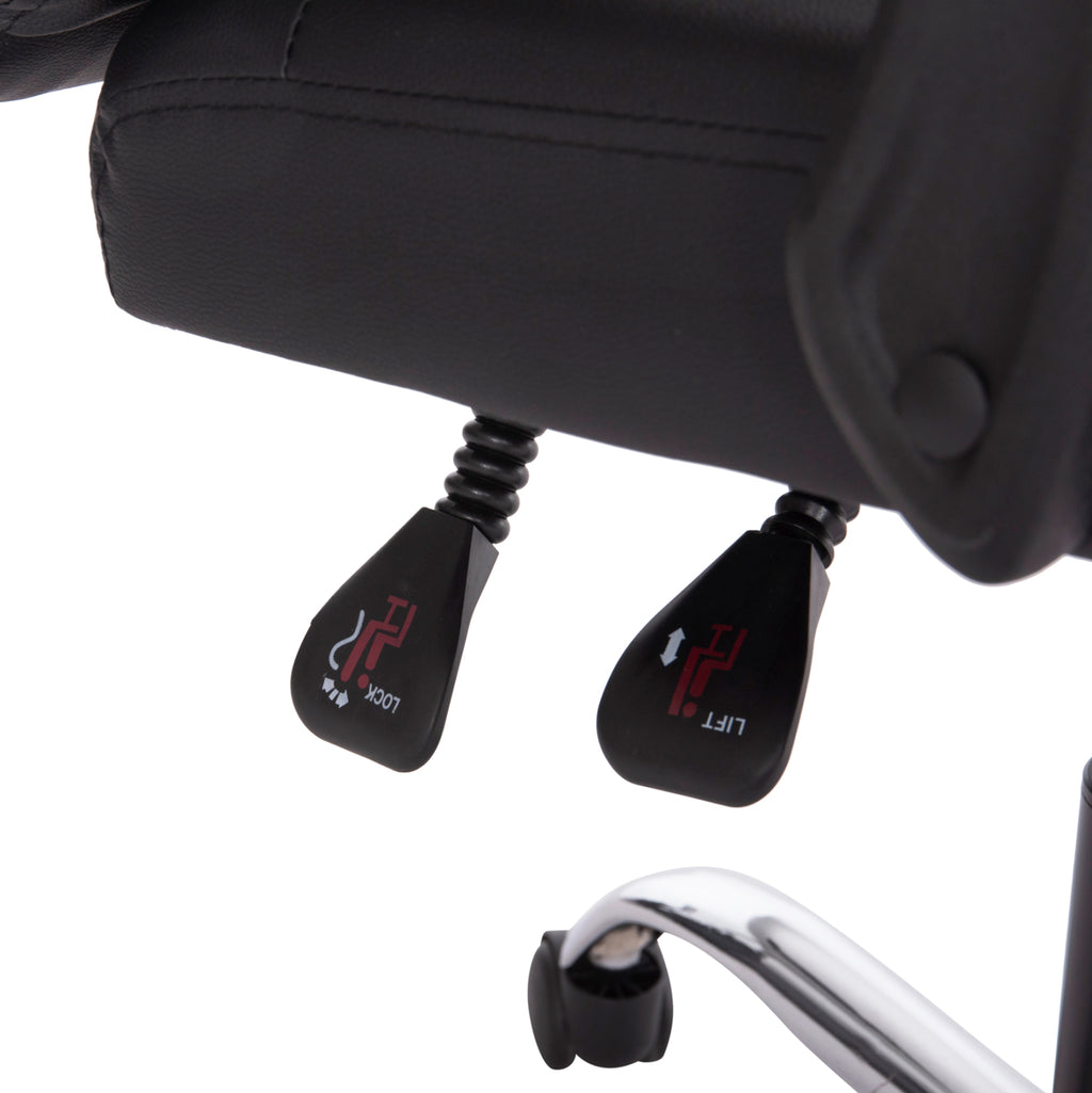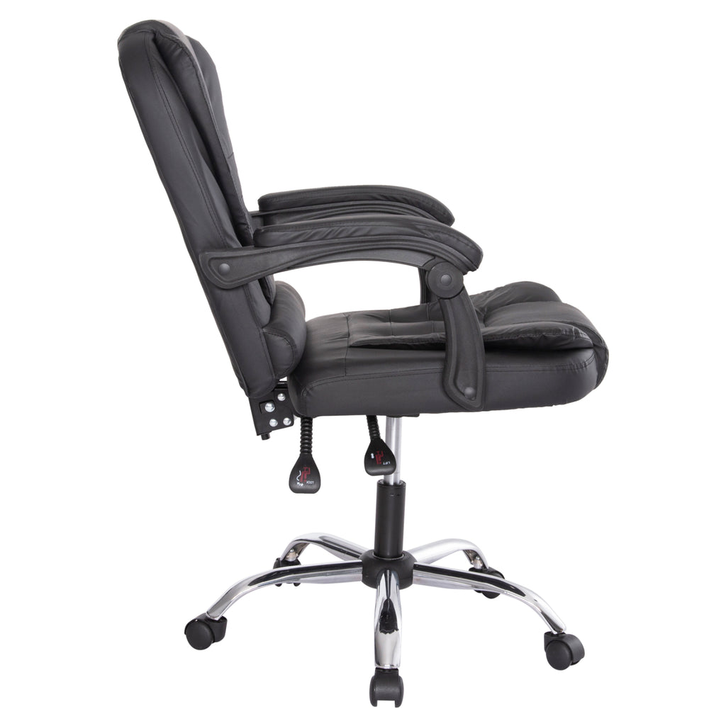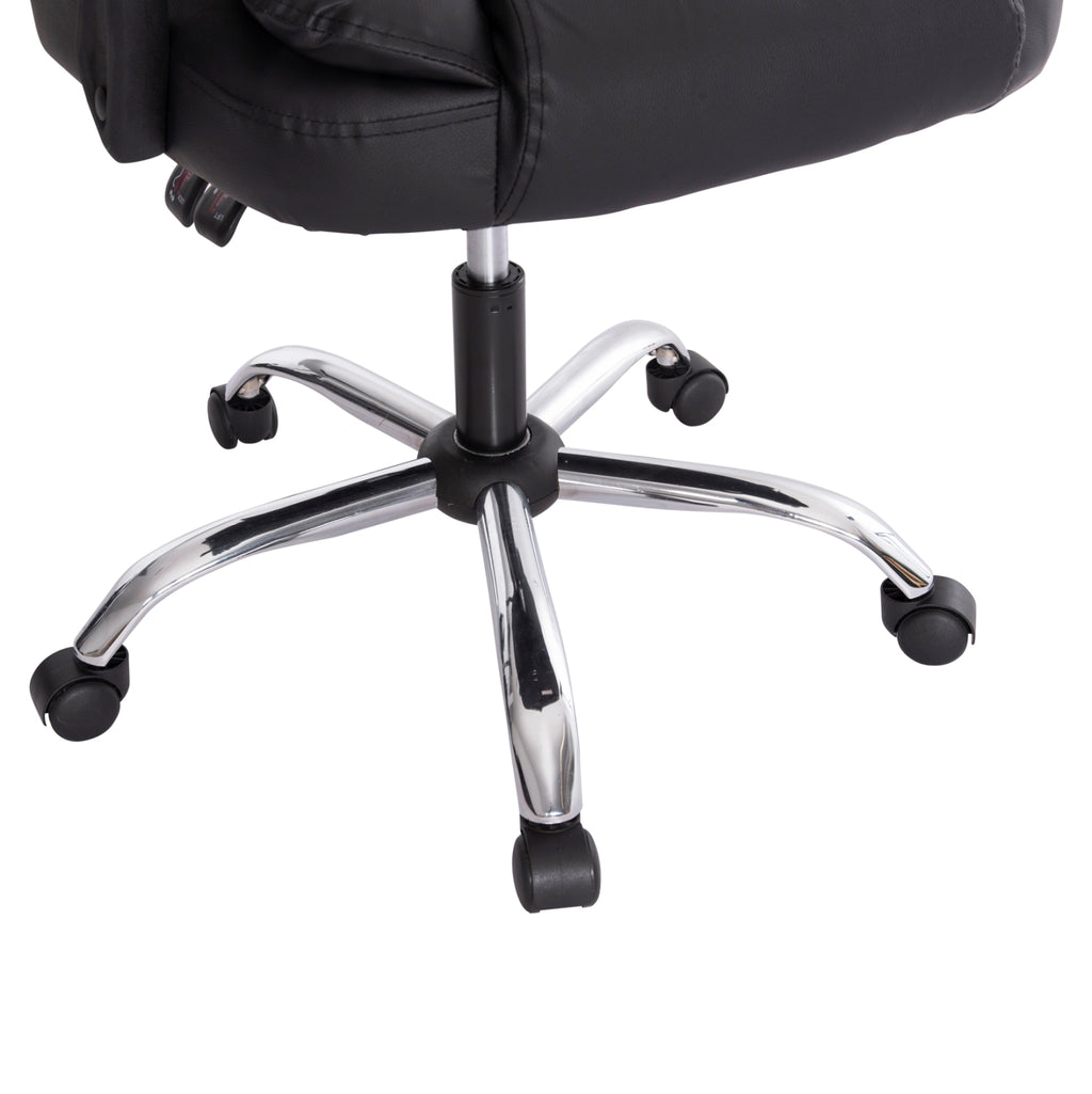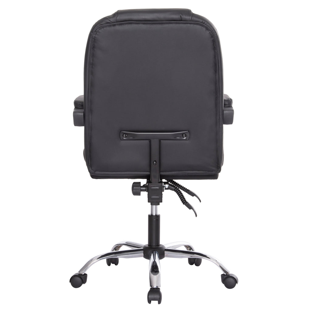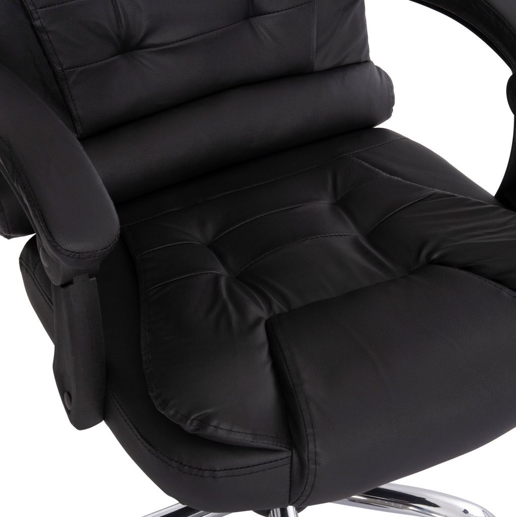 Столът е тапициран с PVC синтетична кожа, която е мека на допир, устойчива на износване и изключително лесна за поддръжка. Тя придава луксозен вид, без да изисква специална грижа. Седалката и облегалката са с добавени слоеве пяна, което осигурява анатомична опора и равномерно разпределение на тежестта. Облегалката с височина 62 см поддържа правилната стойка на гърба, като намалява натоварването в лумбалната зона.