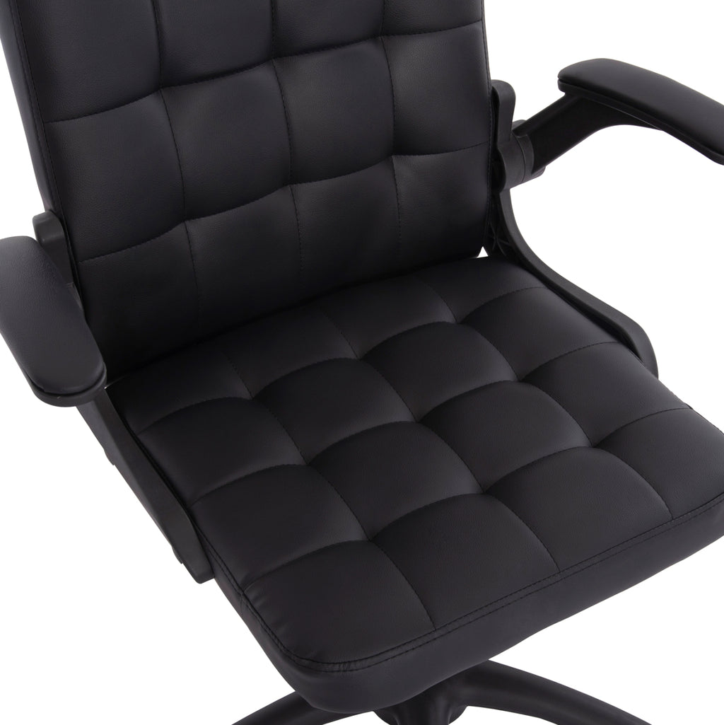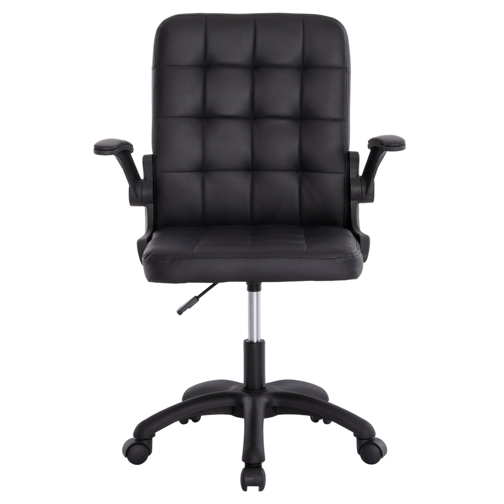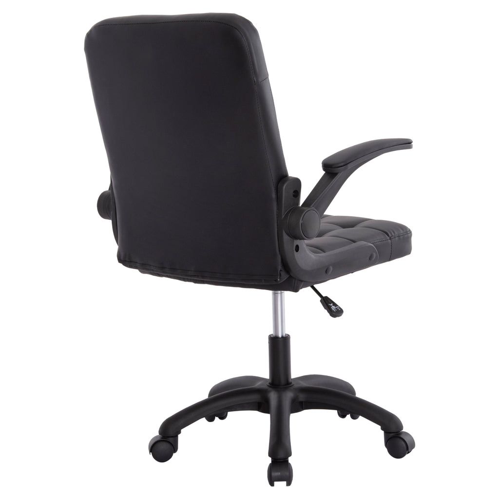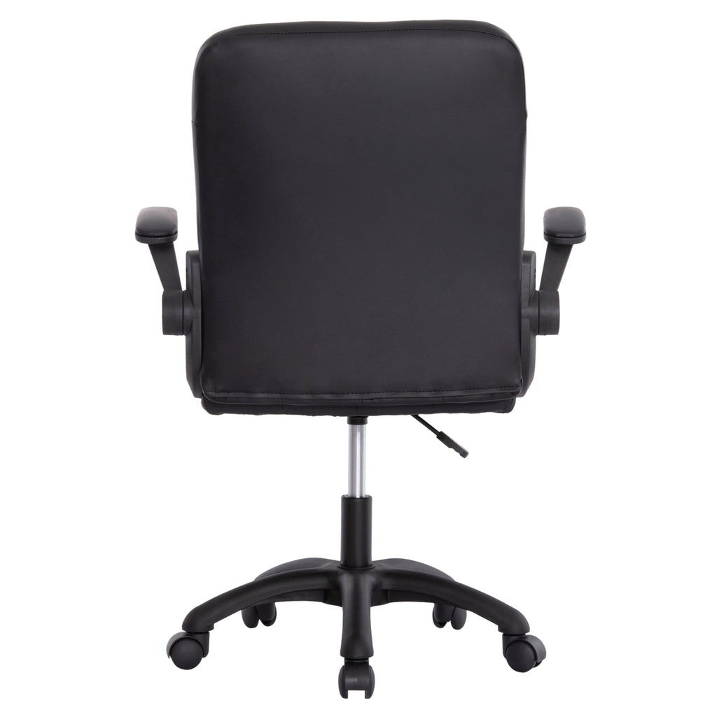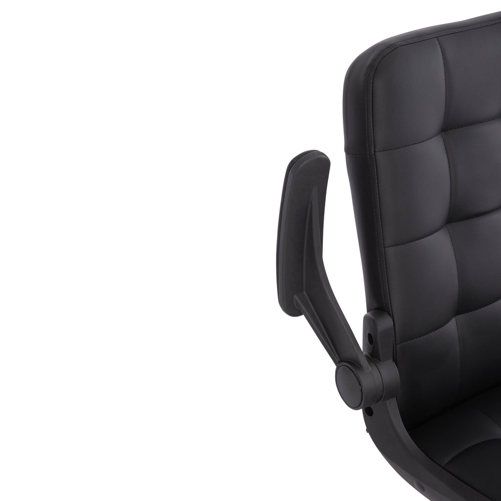 Офис столът PORTIMA в черен цвят е проектиран с средно висока облегалка и повдигащи се подлакътници, което осигурява гъвкавост и персонализирано удобство. Седалката и облегалката са тапицирани с висококачествена PVC кожа в елегантен капитониран стил, придаваща на стола изтънчен и професионален вид.