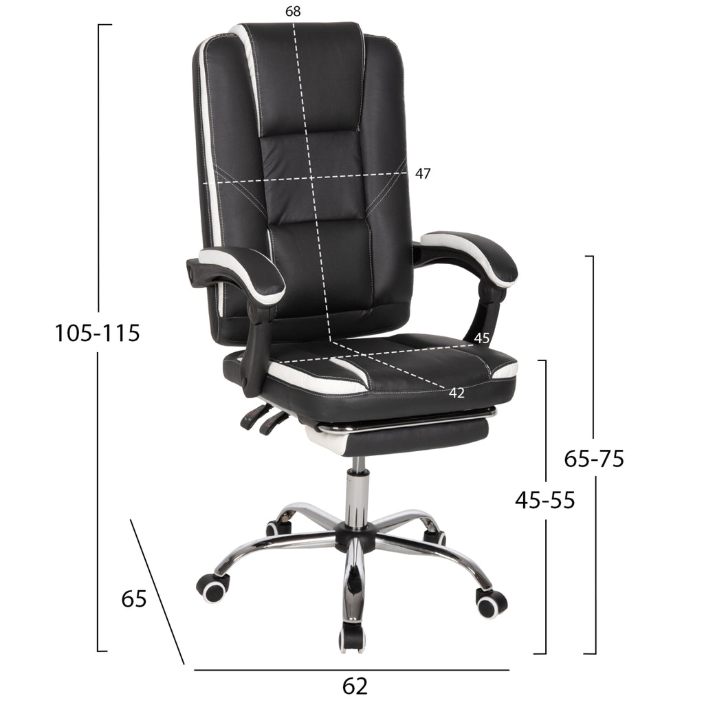 Изберете офис стол SEENA, ако искате комфорт, стабилност и стил. Сгъваемата поставка за крака, регулируемият наклон и меката PU кожа превръщат този модел в чудесен избор за дълги работни дни и моменти на почивка. Подходящ е за офис, студио или домашен кабинет.