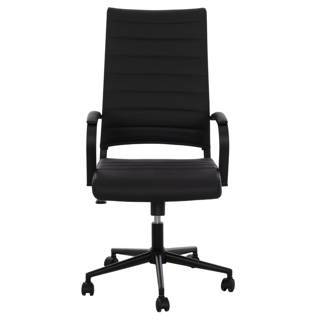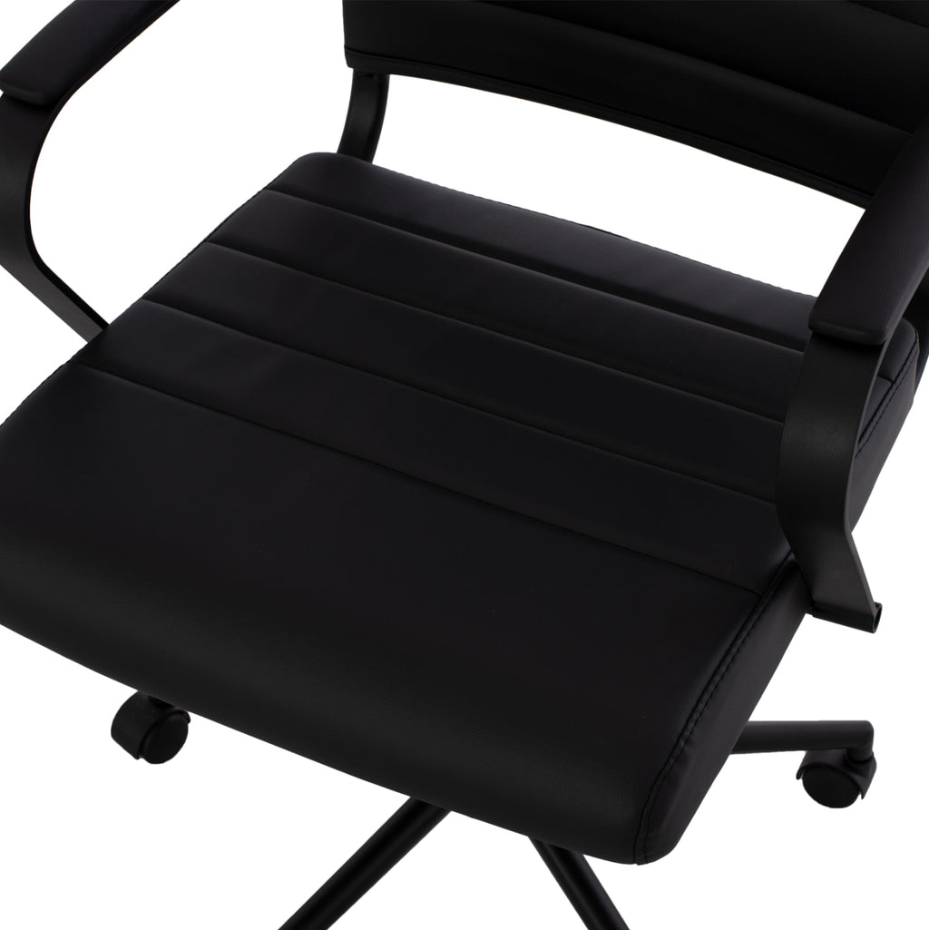 Офис стол SUPERIOR впечатлява с изчистен дизайн, анатомични извивки и комбинация от черна PU кожа и метални елементи, които излъчват лукс и професионализъм. Това е модел, който съчетава модерна визия с функционалност, като предлага комфорт и стабилност по време на работа. Подходящ е както за мениджърски кабинети, така и за домашни офиси с изискан стил.