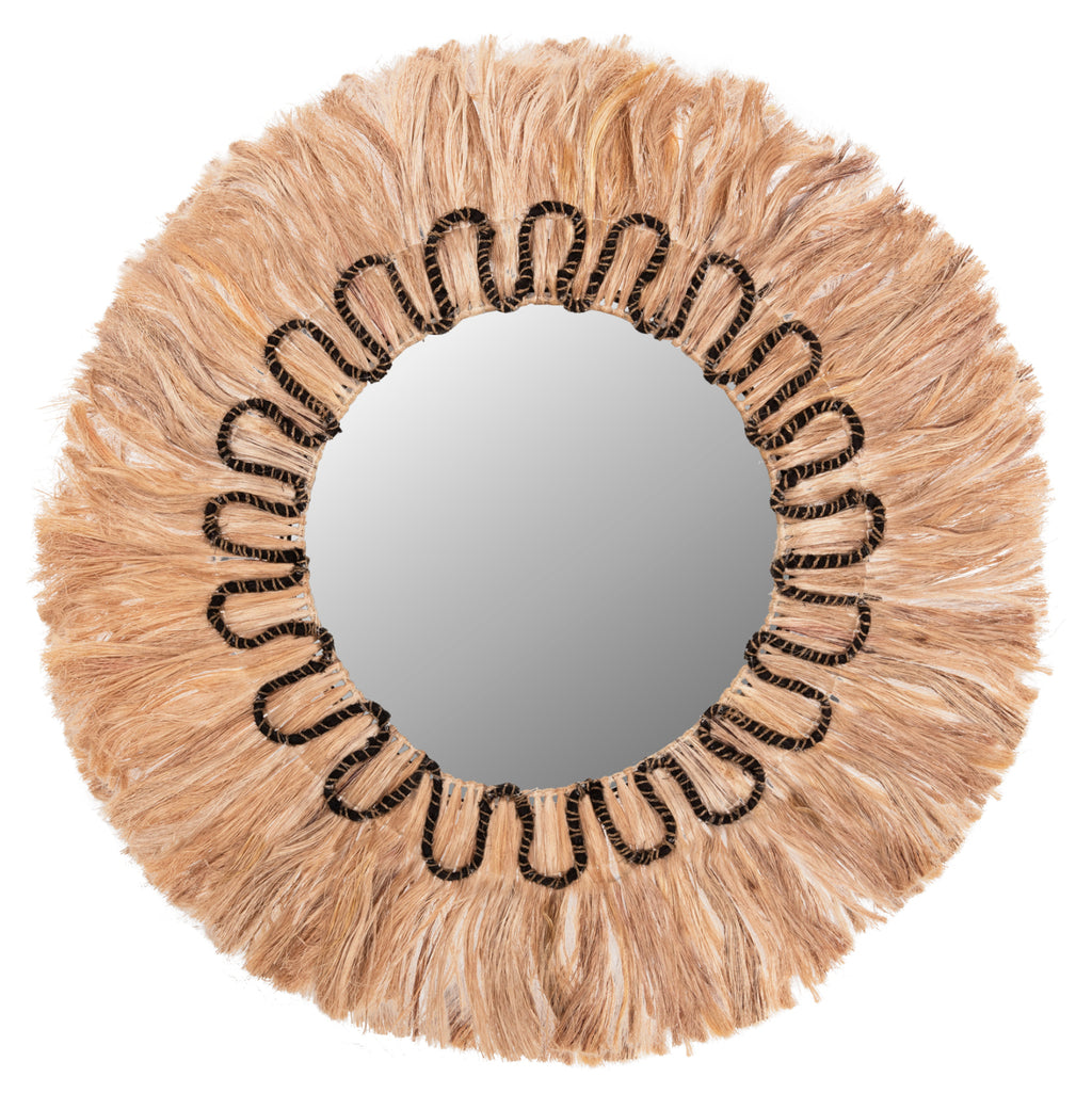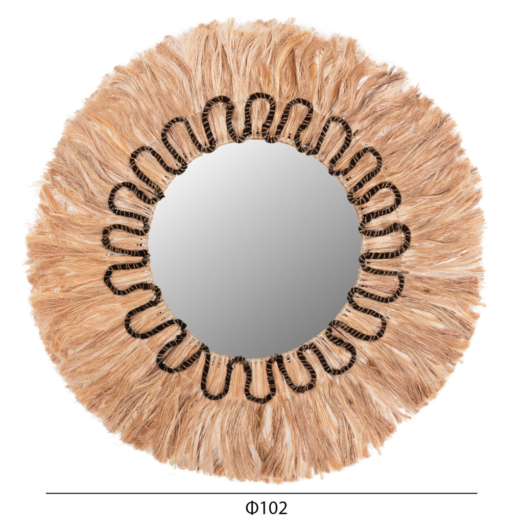 Огледалото КГ7749 е наистина впечатляваща част от декорацията на вашето пространство! Дизайнът му е красив и семпъл с рамка от манилски конопени влакна, която в центъра си "приютява" огледалото. Влакната са в естествения си цвят с черна богато украсена подвързия около огледалото, а размерите на цялата конструкция са перфектни. РАЗМЕРИ: 100х4х100 см. (Φ100см.) Разстояние от стена: 4см. МАТЕРИАЛИ ЗА ИЗРАБОТКА: В допълнение към огледалото, рамката на огледалото е изработена от специално обработени и рециклирани влакна от абака. Манилският коноп, известен още като абака, е вид гланцово влакно, получено от Musa textilis (роднина на ядливите банани), наричано още манилски коноп, както и абака. Абаката е изключително здраво влакно, много скъпо и в пъти по-скъпо от дървесната маса. Името се отнася до столицата на Филипините, един от основните производители на канабис, Манила. Отглеждането на растения абака може да намали ерозията, да увеличи биоразнообразието и да обогати почвата. И накрая, той е устойчив на вода и влага. ПОДДРЪЖКА: Необходимо е само почистване от прах и при необходимост почистване с влажна кърпа. ПРЕДИМСТВА: Огледалото MH7749 е впечатляващо на външен вид и пленява всеки, който го погледне. Идеален е за дома, но също така и за професионални пространства като хотели, Airbnb, зони за хранене като декоративен елемент и др.