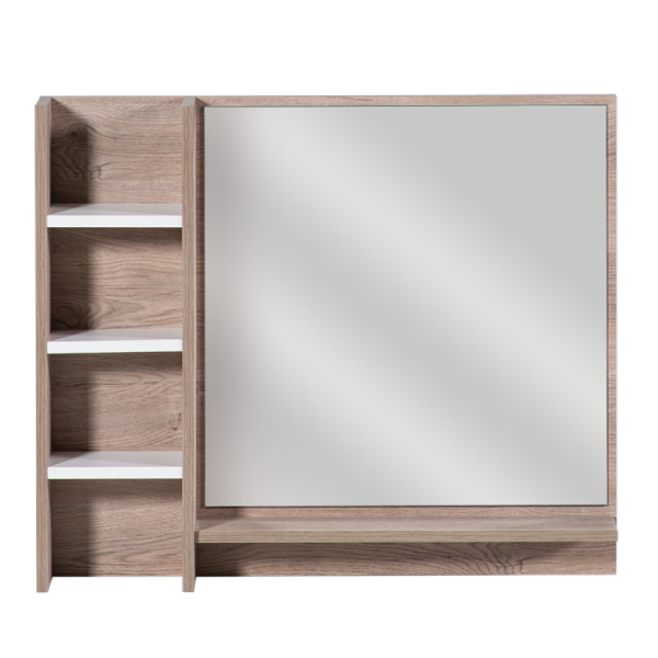 Огледало NATURA е стилно и функционално допълнение към всеки интериор. Изработено е от висококачествен ПДЧ с дебелина 18 мм и включва четири рафта за съхранение на аксесоари и различни вещи. Този модел е перфектен за стаята на тийнейджъра у дома, като гарантира максимално удобство.