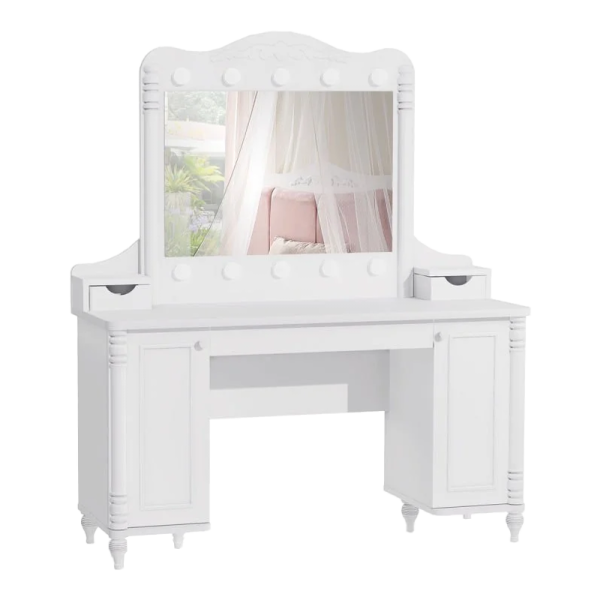 Огледалото NIL е любим аксесоар за всяка тийнейджърска стая, който превръща ежедневното разкрасяване в забавление. Снабдено със стилни лампи, то осигурява перфектната светлина за прецизен грим или прическа по всяко време. Моделът съчетава модерна визия и стабилност, като придава професионално излъчване на пространството и го прави да изглежда по-светло и просторно.