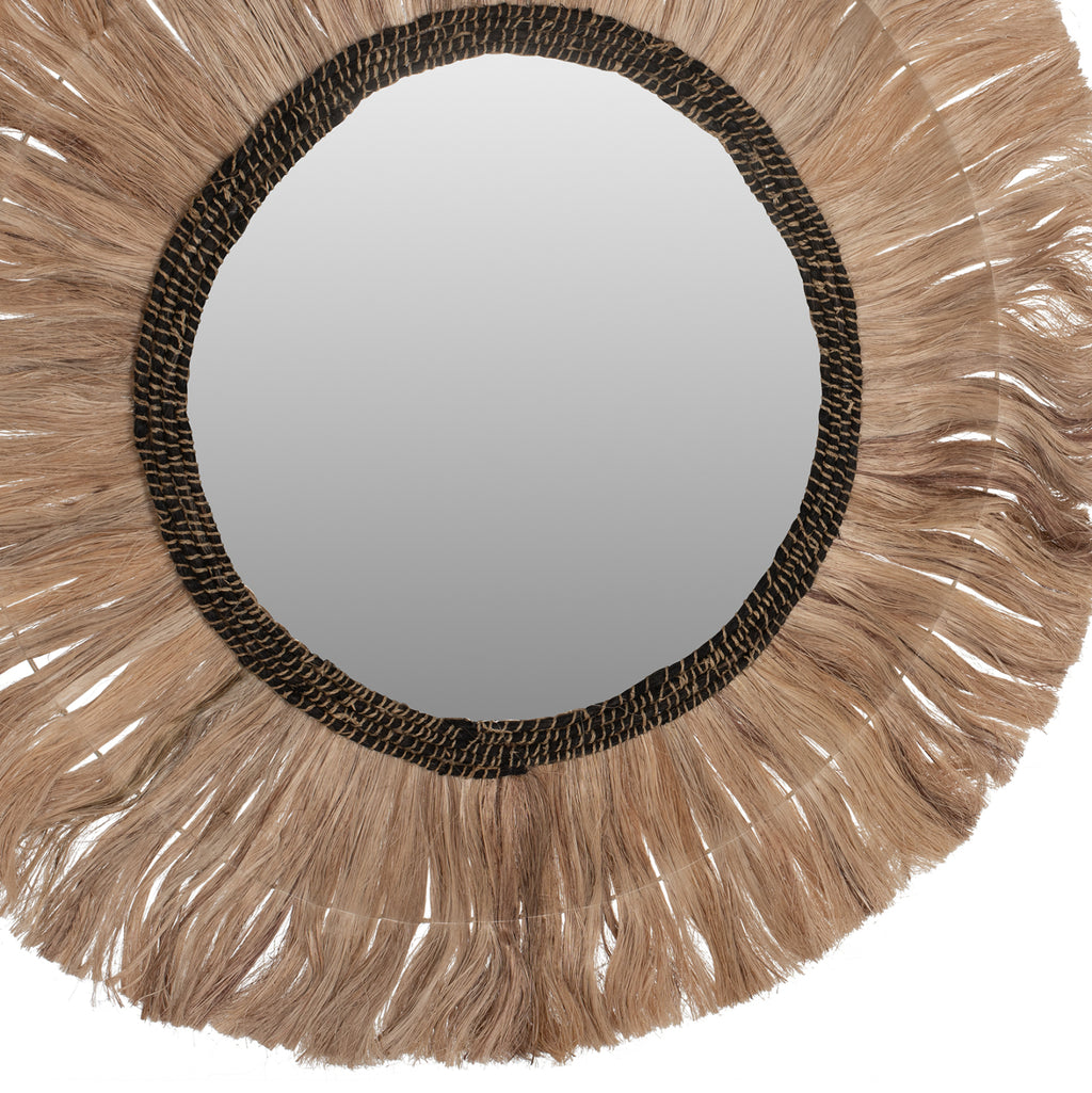 Огледалото КГ7748 е наистина впечатляващо парче в декорацията на вашето пространство! Дизайнът му е красив и семпъл с рамка от манилски конопени влакна, която в центъра си "приютява" огледалото. Влакната са в естествения си цвят с черна подвързия около огледалото, а размерите на цялата конструкция са перфектни. РАЗМЕРИ: 100х4х100 см. (Φ100см.) Разстояние от стена: 4см. МАТЕРИАЛИ ЗА ИЗРАБОТКА: В допълнение към огледалото, рамката на огледалото е изработена от специално обработени и рециклирани влакна от абака. Манилският коноп, известен още като абака, е вид гланцово влакно, получено от Musa textilis (роднина на ядливите банани), наричано още манилски коноп, както и абака. Абаката е изключително здраво влакно, много скъпо и в пъти по-скъпо от дървесната маса. Името се отнася до столицата на Филипините, един от основните производители на канабис, Манила. Отглеждането на растения абака може да намали ерозията, да увеличи биоразнообразието и да обогати почвата. И накрая, той е устойчив на вода и влага. ПОДДРЪЖКА: Необходимо е само почистване от прах и при необходимост почистване с влажна кърпа. ПРЕДИМСТВА: Огледалото MH7748 е впечатляващо на външен вид и пленява всеки, който го погледне. Идеален е за дома, но също така и за професионални пространства като хотели, Airbnb, зони за хранене като декоративен елемент и др.
