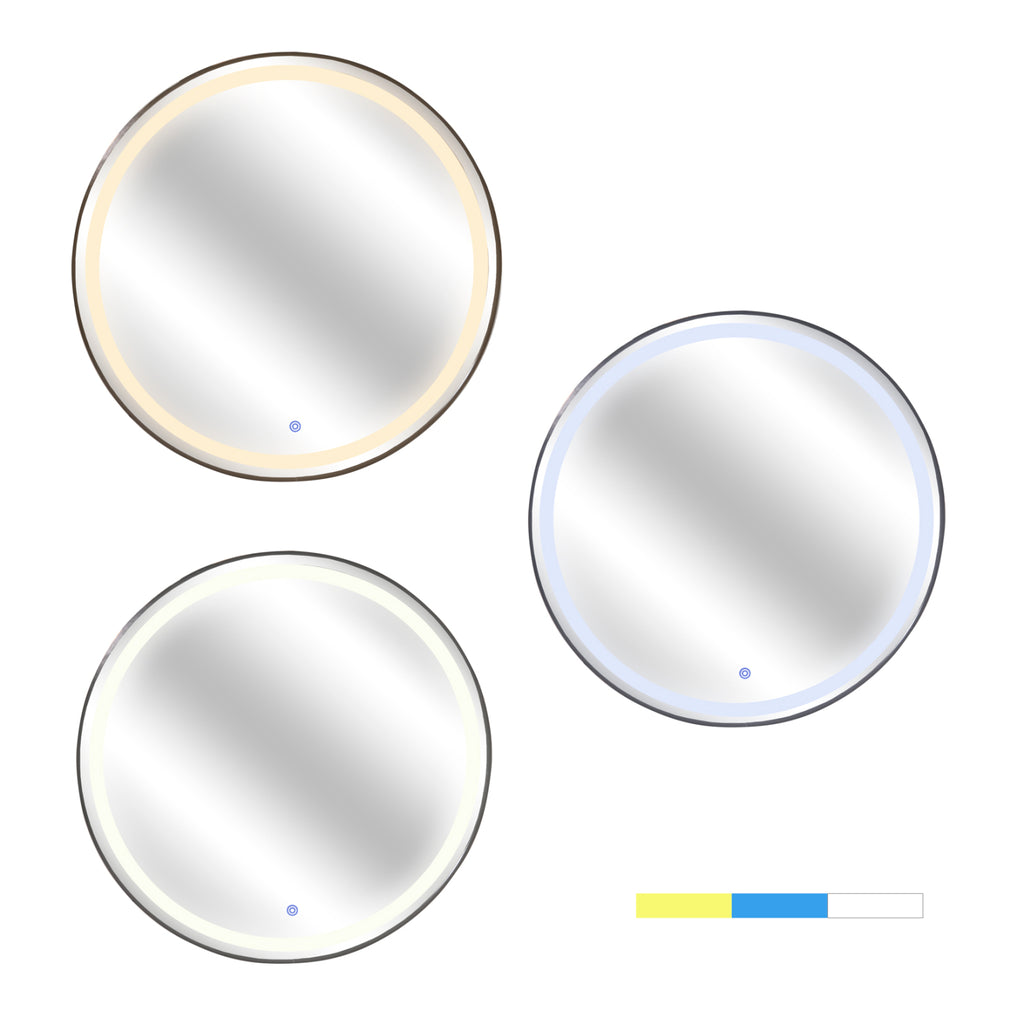 ROUNDER е кръгло стенно огледало с ЧЕРНА рамка, елегантно и сравнително голямо. Това, което го отличава от обикновените огледала обаче е, че има LED осветление, интегрирано в кръгова подредба, следваща „линията“ на рамката. Осветлението се активира със сензорен ключ отпред и отдолу на огледалото и произвежда 3 различни цвята светлина. Топло (жълтеникаво), светло синьо и естествено бяло, активирани чрез натискане на същия сензорен бутон. Полезен "инструмент" предимно за банята, но и за всяко друго пространство, където имате нужда от огледало с осветление! РАЗМЕРИ: Φ80x3 (разстояние от стена) см. КОНСТРУКТИВЕН МАТЕРИАЛ: Рамката на огледалото е алуминиева, което го прави леко и издръжливо. ** Цветопредаването на продукта може леко да се различава от неговото фотографско представяне на вашия екран.