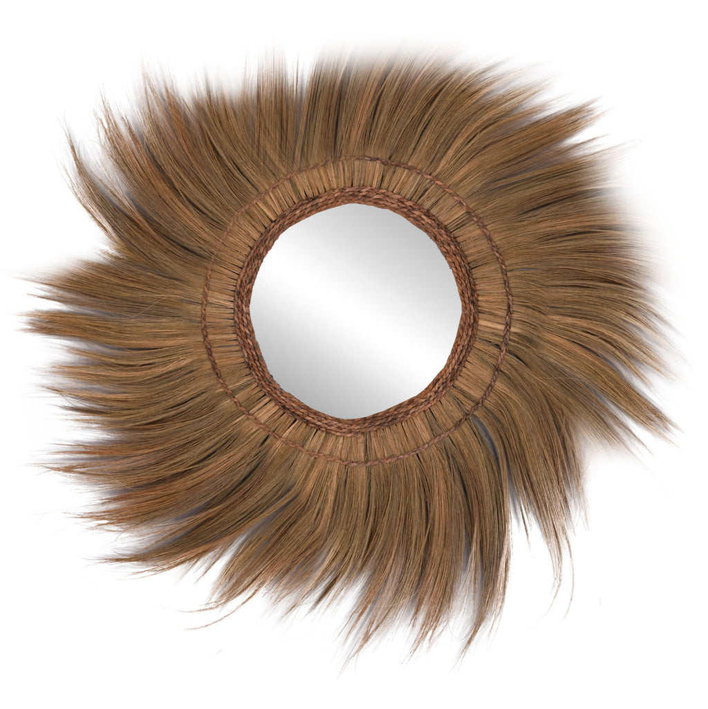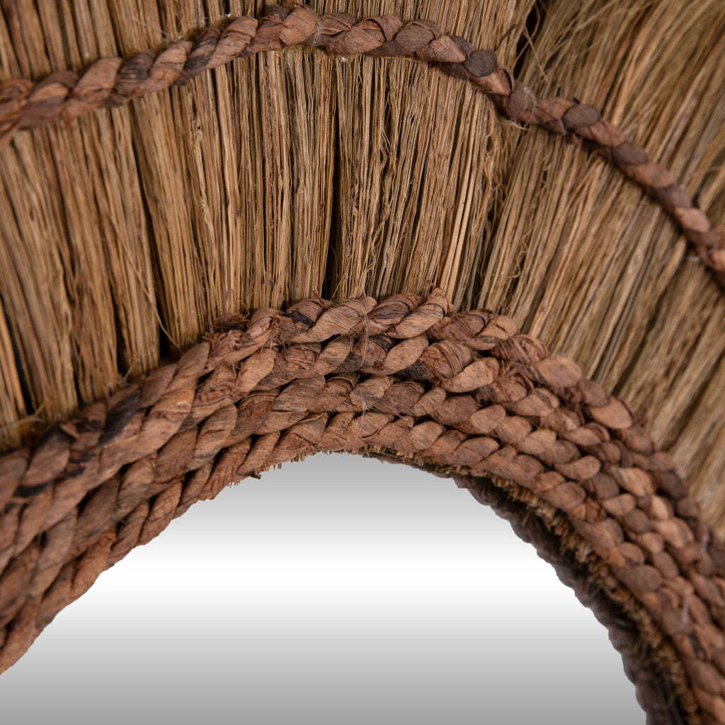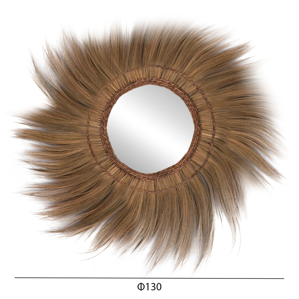 Огледалото КГ7734 е наистина впечатляващо парче в декорацията на вашето пространство! Дизайнът му е уникален с майсторски изработената рамка от влакна на бананова кора, която в центъра си "приютява" огледалото. Влакната са в естествения си цвят и размерите на цялата конструкция са големи. РАЗМЕРИ: 130х4х130 см. (Φ130см.) Разстояние от стена: 4см. МАТЕРИАЛИ НА ИЗРАБОТКА: Освен огледалото, рамката на огледалото е изработена от специално обработени влакна от бананови кори. ПОДДРЪЖКА: Необходимо е само почистване от прах и при необходимост почистване с влажна кърпа. ПРЕДИМСТВА: Огледалото MH7734 е впечатляващо на външен вид и пленява всеки, който го погледне. Идеален е както за дома, така и за професионални пространства като хотели, Airbnb, заведения за обществено хранене като декоративен елемент и др.