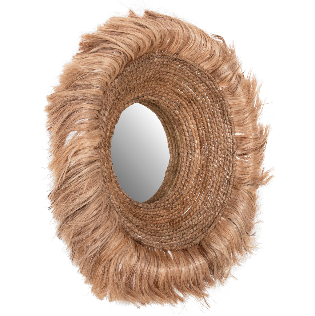 Огледалото КГ7742 е наистина впечатляваща част от декорацията на вашето пространство! Дизайнът му ще предизвика интереса на всички, с рамка от манилски конопени влакна в естествен цвят, която в центъра си "приютява" сравнително малкото огледало. Така че това, което прави това огледало да се откроява, е усещането за дълбочина, което дава, тъй като въжето от влакна от абака около огледалото е хоризонтално и образува „кладенец“, който на свой ред е ограден от кичури влакна от абака. Основно декоративно огледало за стена, което осигурява фокусна точка във вашето пространство в много специален стил. РАЗМЕРИ: 85х17х85 см. (Φ85см.) Разстояние от стена: 17см. МАТЕРИАЛИ НА ИЗРАБОТКА: В допълнение към огледалото, рамката на огледалото е изработена от специално обработени влакна от абака. Манилският коноп, известен още като абака, е вид гланцово влакно, получено от Musa textilis (роднина на ядливите банани), наричано още манилски коноп, както и абака. Абаката е изключително здраво влакно, много скъпо и в пъти по-скъпо от дървесната маса. Името се отнася до столицата на Филипините, един от основните производители на канабис, Манила. Отглеждането на растения абака може да намали ерозията, да увеличи биоразнообразието и да обогати почвата. И накрая, той е устойчив на вода и влага. ПОДДРЪЖКА: Необходимо е само почистване от прах и при необходимост почистване с влажна кърпа. ПРЕДИМСТВА: Огледалото MH7742 е впечатляващо на външен вид и всеки, който го погледне, се чувства "потопен" благодарение на уникалния му дизайн. Идеален е за дома, но също така и за професионални пространства като хотели, Airbnb, зони за хранене като декоративен елемент и др.