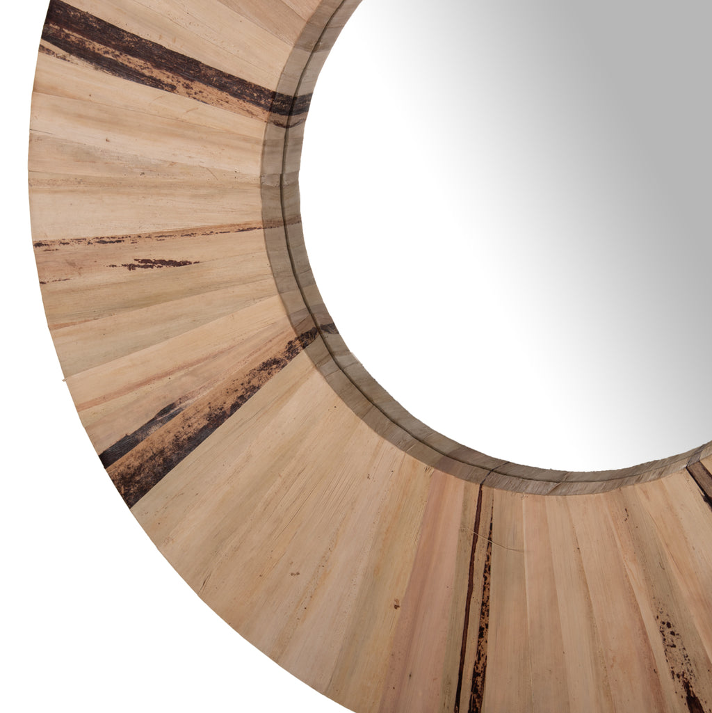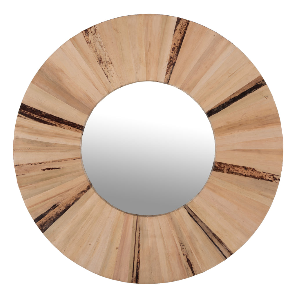 Огледалото Μ7838 от новата ни продуктова гама е наистина впечатляващо парче в декорацията на вашето пространство! Дизайнът му е уникален с майсторски изработената кръгла рамка, изработена от изсушени влакна от палмови листа, които сега придават дървесно усещане. Влакната (листата) са в естествения си цвят, а размерите на огледалото са богати. РАЗМЕРИ: Φ80см. Дебелина: 4см. МАТЕРИАЛИ ЗА ИЗРАБОТКА: Освен огледалото, рамката е изработена от изсушени влакна от палмови листа, известни още като Настолна палма или Ветрило палма. Това е много привлекателна и елегантна палма с големи, лъскави ветрилообразни листа и бодливи стъбла. Расте в Югоизточна Азия и Нова Гвинея. ПОДДРЪЖКА: Необходимо е само почистване от прах и при необходимост почистване с влажна кърпа. ПРЕДИМСТВА: Огледалото е впечатляващо за гледане и пленява всеки, който го погледне. Идеален е както за дома, така и за професионални пространства като хотели, Airbnb, заведения за обществено хранене като декоративен елемент и др.