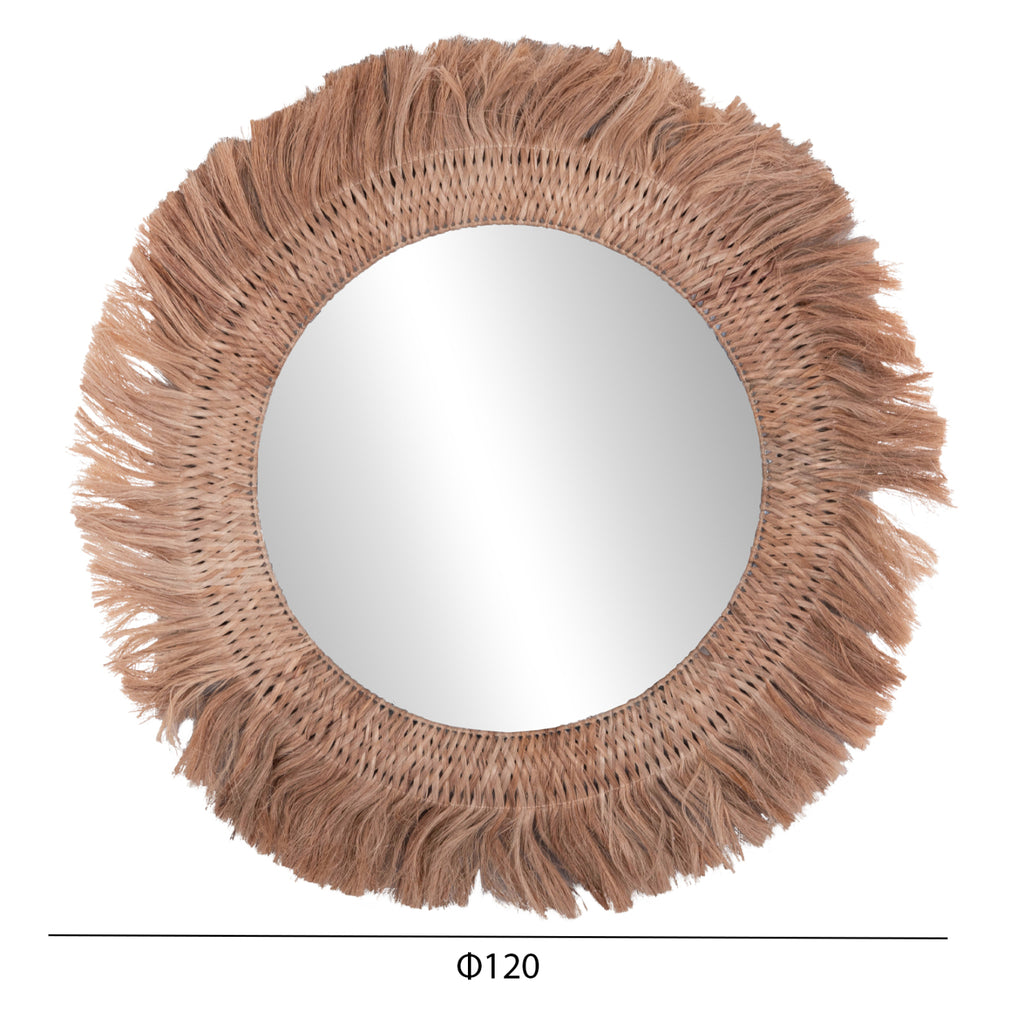 Огледалото КГ7747 е наистина впечатляващо парче в декорацията на вашето пространство! Дизайнът му е красив и семпъл с рамка от манилски конопени влакна, която в центъра си "приютява" огледалото. Влакната са в естествения си цвят и размерите на цялата конструкция са перфектни. РАЗМЕРИ: 120х4х120 см. (Φ120см.) Разстояние от стена: 4см. МАТЕРИАЛИ НА ИЗРАБОТКА: В допълнение към огледалото, рамката на огледалото е изработена от специално обработени влакна от абака. Манилският коноп, известен още като абака, е вид гланцово влакно, получено от Musa textilis (роднина на ядливите банани), наричано още манилски коноп, както и абака. Абаката е изключително здраво влакно, много скъпо и в пъти по-скъпо от дървесната маса. Името се отнася до столицата на Филипините, един от основните производители на канабис, Манила. Отглеждането на растения абака може да намали ерозията, да увеличи биоразнообразието и да обогати почвата. И накрая, той е устойчив на вода и влага. ПОДДРЪЖКА: Необходимо е само почистване от прах и при необходимост почистване с влажна кърпа. ПРЕДИМСТВА: Огледалото MH7747 е впечатляващо на външен вид и пленява всеки, който го погледне. Идеален е както за дома, така и за професионални пространства като хотели, Airbnb, кетъринг зони като декоративен елемент и т.н. Все пак най-новата тенденция в декорацията са естествените материали!