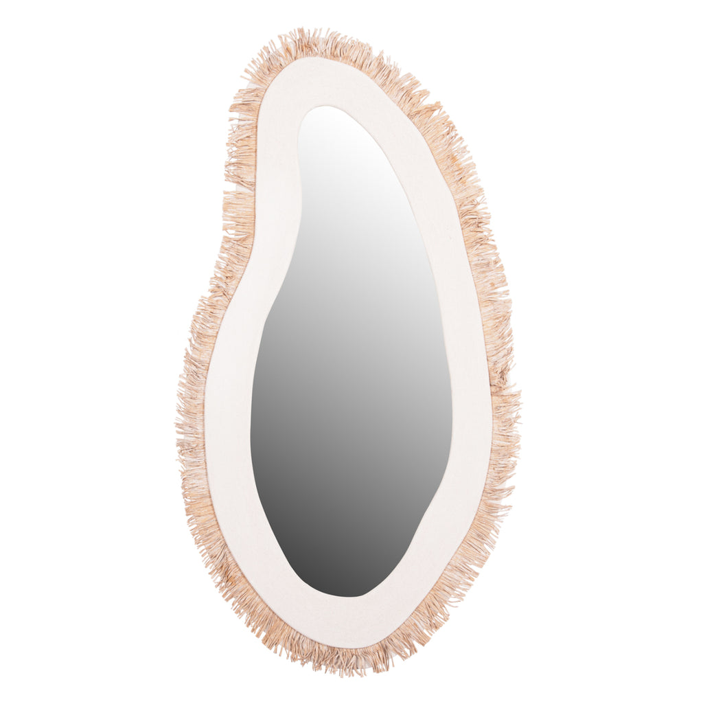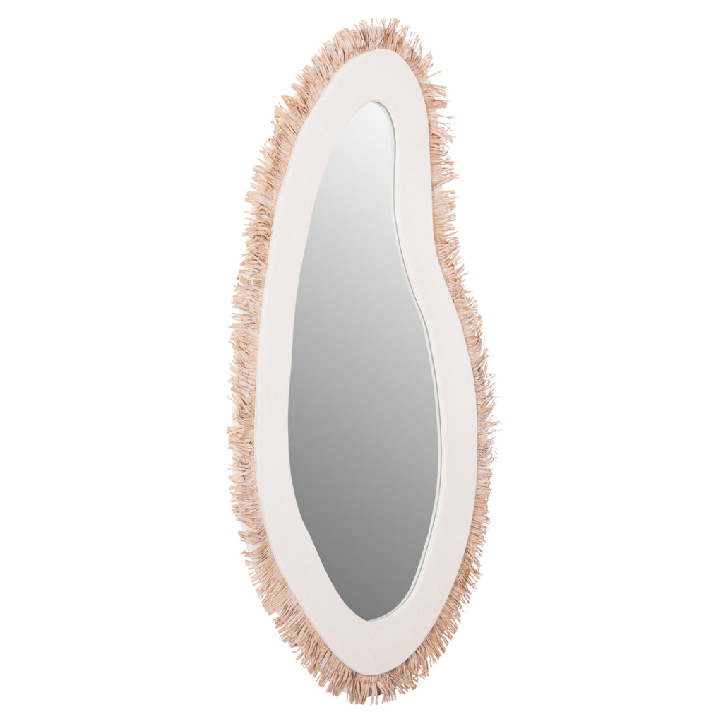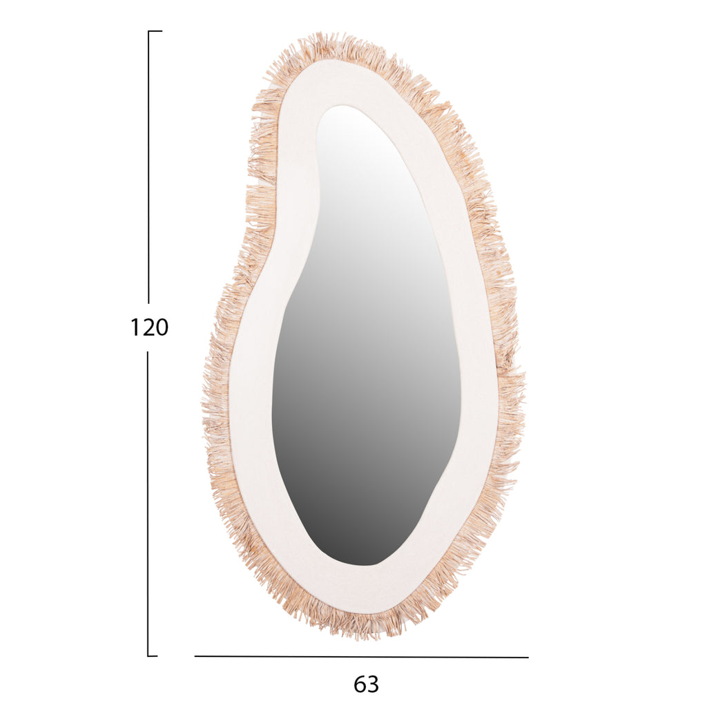 Огледалото SANTORINI е ръчно изработено стенно огледало с БЕЗБЯЛА рамка в неправилна форма, с БЕЖОВА акрилна трева като декорация по периметъра. Полезен "инструмент" за всяка стая, от която имате нужда от огледало! Идеален да допълни по най-добрия начин декорация в стил "остров"! РАЗМЕРИ: Общо включително рамката: 63x1.8 (разстояние от стената)x120H cm. МАТЕРИАЛ НА ИЗРАБОТКА: Рамката на огледалото е изработена от MDF със сива циментова текстура, следваща най-новите тенденции в интериорния дизайн. MDF (влакна със средна плътност) е модерен материал за масово потребление с основните характеристики на абсорбиране на минимална влага, хомогенност на масата, задоволителни механични свойства, отлична гладкост и много възможности за обработка. ПОДДРЪЖКА: Достатъчно е редовно почистване на прах и забърсване с влажна кърпа, като можете да използвате и меки търговски почистващи препарати. ** Цветопредаването на продукта може леко да се различава от неговото фотографско представяне на вашия екран.
