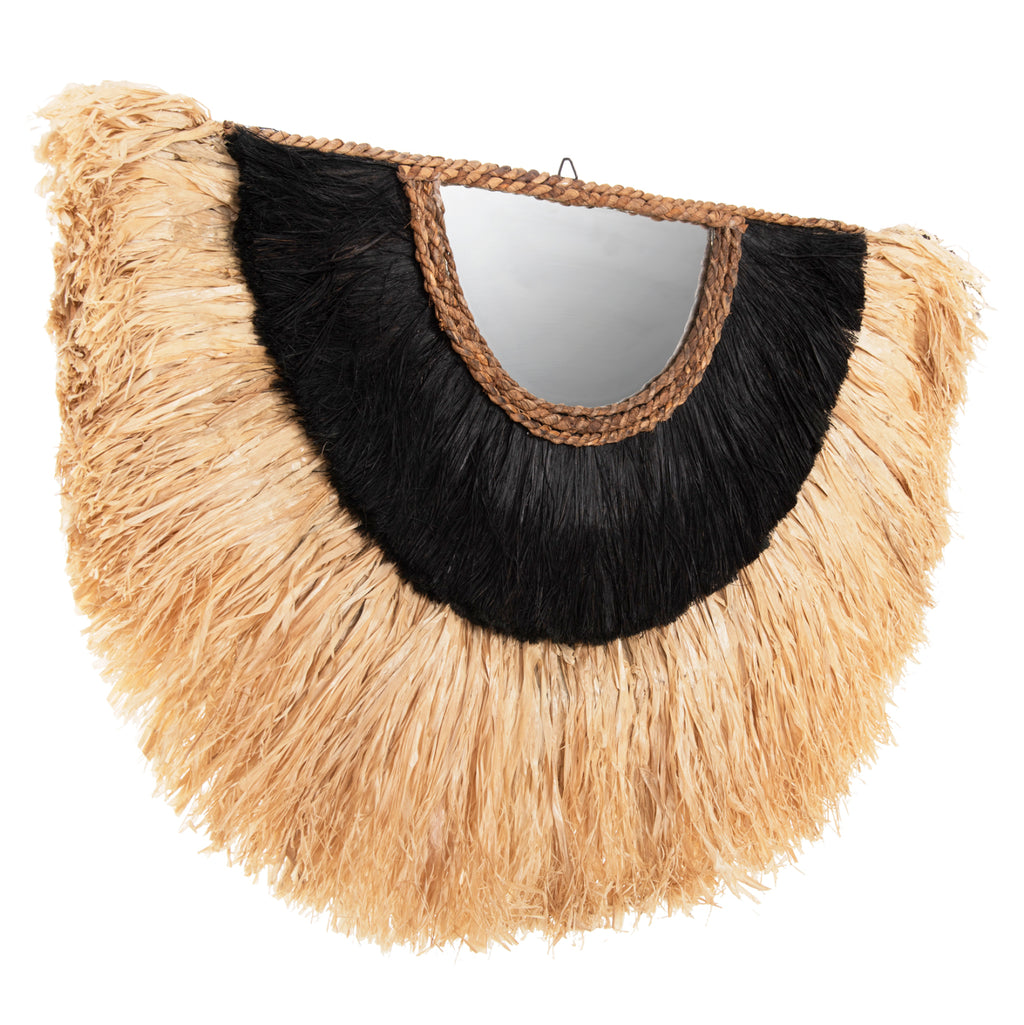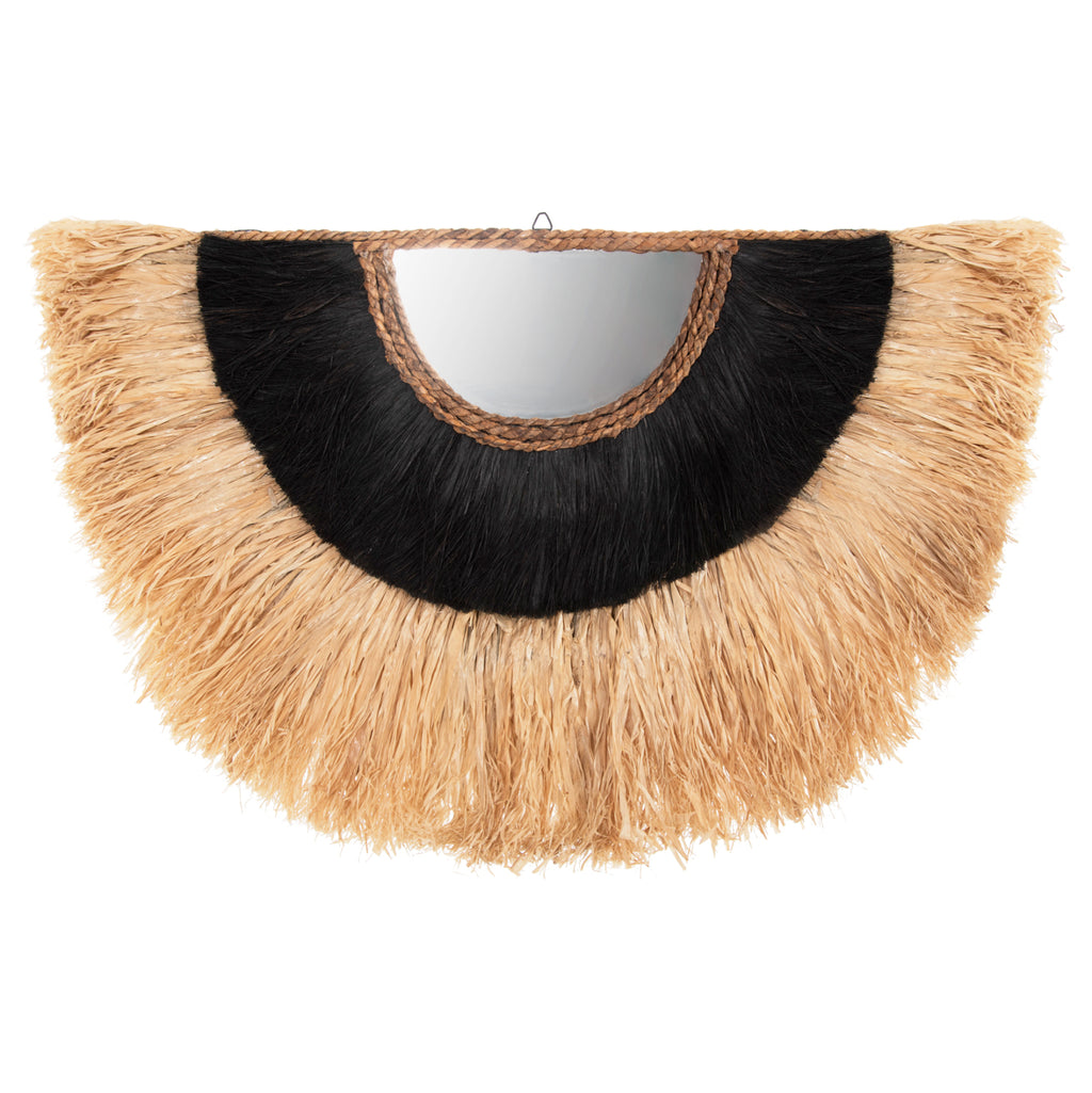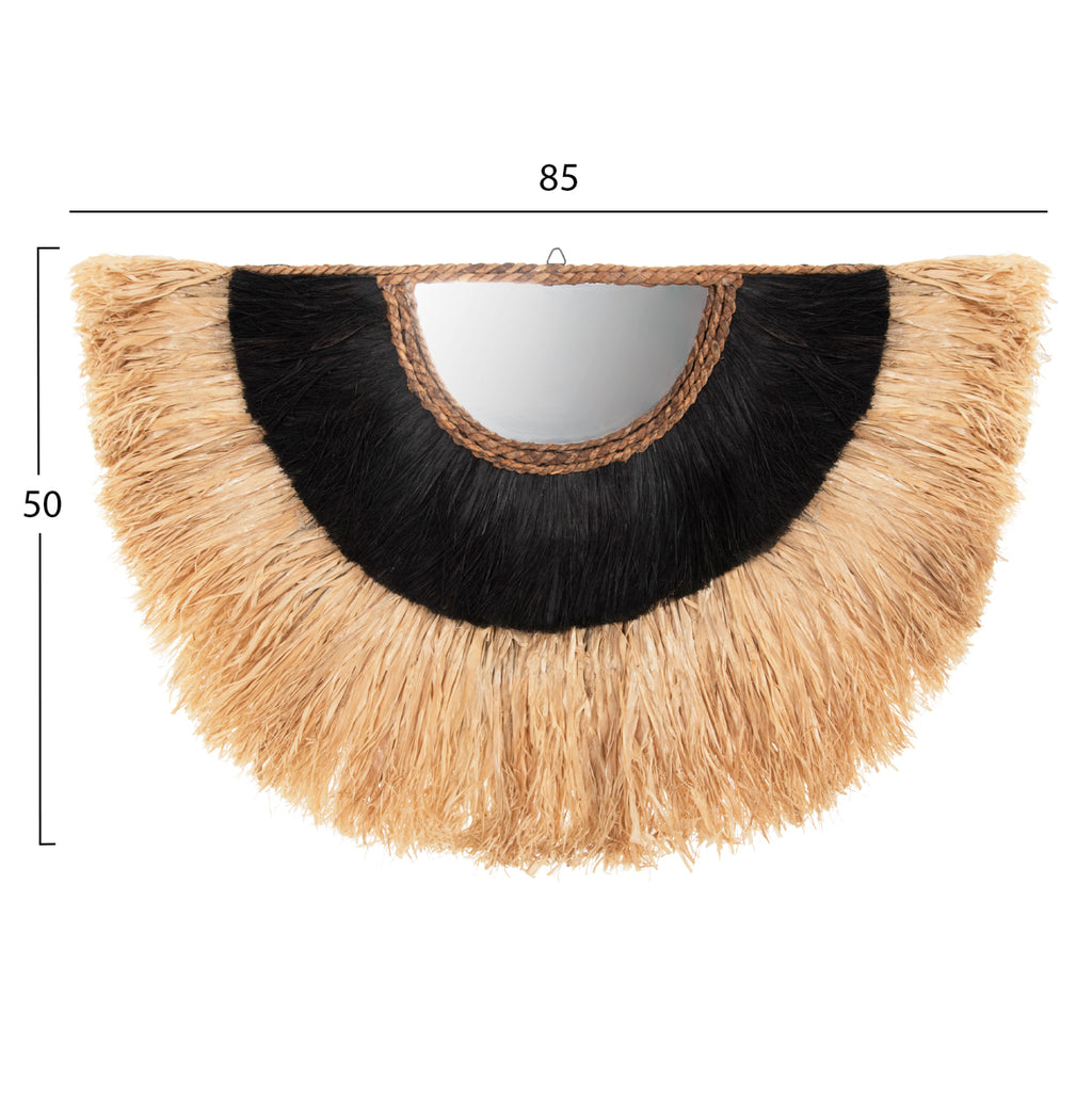 Полукръглото огледало MH7799 е наистина впечатляващо парче в декорацията на вашето пространство! Дизайнът му е красив и семпъл с рамка, изработена от сизалови влакна в естествен цвят и конопени влакна Manila в черен цвят. Декоративно огледало, което ще придаде различна естетика на вашето пространство и в същото време ще бъде красива опорна точка. РАЗМЕРИ: 85х50Н см. Разстояние от стената: 3см. МАТЕРИАЛИ ЗА ИЗРАБОТКА: В допълнение към огледалото, рамката на огледалото в по-голямата си част е изработена от специално обработени сизалови влакна. Сизал (Agave sisalana) е вид цъфтящо растение, произхождащо от южно Мексико, но сега широко култивирано в много други страни. От листата му се получава твърдо влакно, което се използва за направата на въжета и различни други продукти. Терминът сизал може да се отнася или до общото име на растението, или до влакното, в зависимост от контекста. Сизаловото влакно традиционно се използва за въжета и канап и има много други приложения като хартия, плат, обувки, шапки, чанти, килими, геотекстил и т.н. Използва се също като армировъчно влакно за композитни продукти от фибростъкло, каучук и бетон. Освен това конопените влакна от Манила, известни още като абака, са вид лъскави оцветени влакна, получени от Musa textilis (роднина на годни за консумация банани), наричани още манилски коноп, както и абака. Абаката е изключително здраво влакно, много скъпо и в пъти по-скъпо от дървесната маса. Името се отнася до столицата на Филипините, един от основните производители на канабис, Манила. Отглеждането на растения абака може да намали ерозията, да увеличи биоразнообразието и да обогати почвата. И накрая, той е устойчив на вода и влага. ПОДДРЪЖКА: Необходимо е само почистване от прах и при необходимост почистване с влажна кърпа. ПРЕДИМСТВА: Полукръглото огледало MH7799 е впечатляващо на външен вид и пленява всеки, който го погледне. Идеален е за дома, но също така и за професионални пространства като хотели, Airbnb, зони за хранене като декоративен елемент и др.