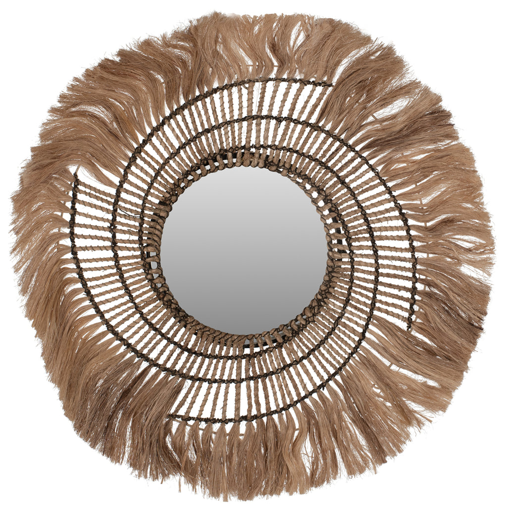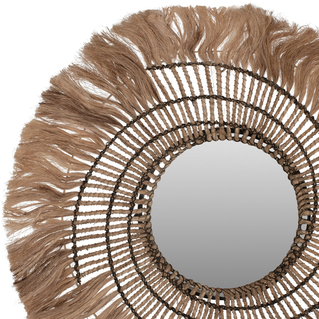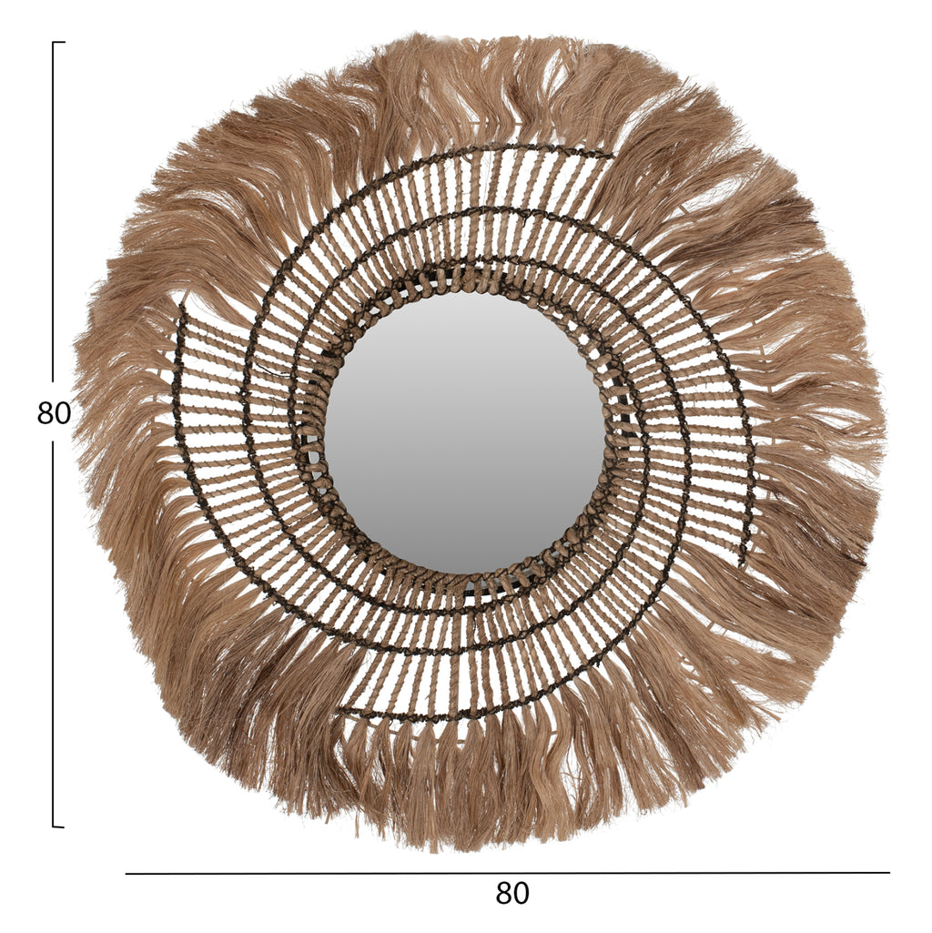 Огледалото КГ7741 е наистина впечатляващо парче в декорацията на вашето пространство! Дизайнът му е красив и семпъл с рамка, изработена от манила конопени влакна в естествен цвят, докато черно въже красиво завързва влакната във вихров модел. В центъра на този дизайн е сравнително малкото огледало. Основно декоративно огледало за стена, което осигурява фокусна точка във вашето пространство в много специален стил. РАЗМЕРИ: 80х4х80 см. (Φ80см.) Разстояние от стена: 4см. МАТЕРИАЛИ НА ИЗРАБОТКА: В допълнение към огледалото, рамката на огледалото е изработена от специално обработени влакна от абака. Манилският коноп, известен още като абака, е вид гланцово влакно, получено от Musa textilis (роднина на ядливите банани), наричано още манилски коноп, както и абака. Абаката е изключително здраво влакно, много скъпо и в пъти по-скъпо от дървесната маса. Името се отнася до столицата на Филипините, един от основните производители на канабис, Манила. Отглеждането на растения абака може да намали ерозията, да увеличи биоразнообразието и да обогати почвата. И накрая, той е устойчив на вода и влага. ПОДДРЪЖКА: Необходимо е само почистване от прах и при необходимост почистване с влажна кърпа. ПРЕДИМСТВА: Огледалото MH7741 е впечатляващо на външен вид и пленява всеки, който го погледне. Идеален е за дома, но също така и за професионални пространства като хотели, Airbnb, зони за хранене като декоративен елемент и др.