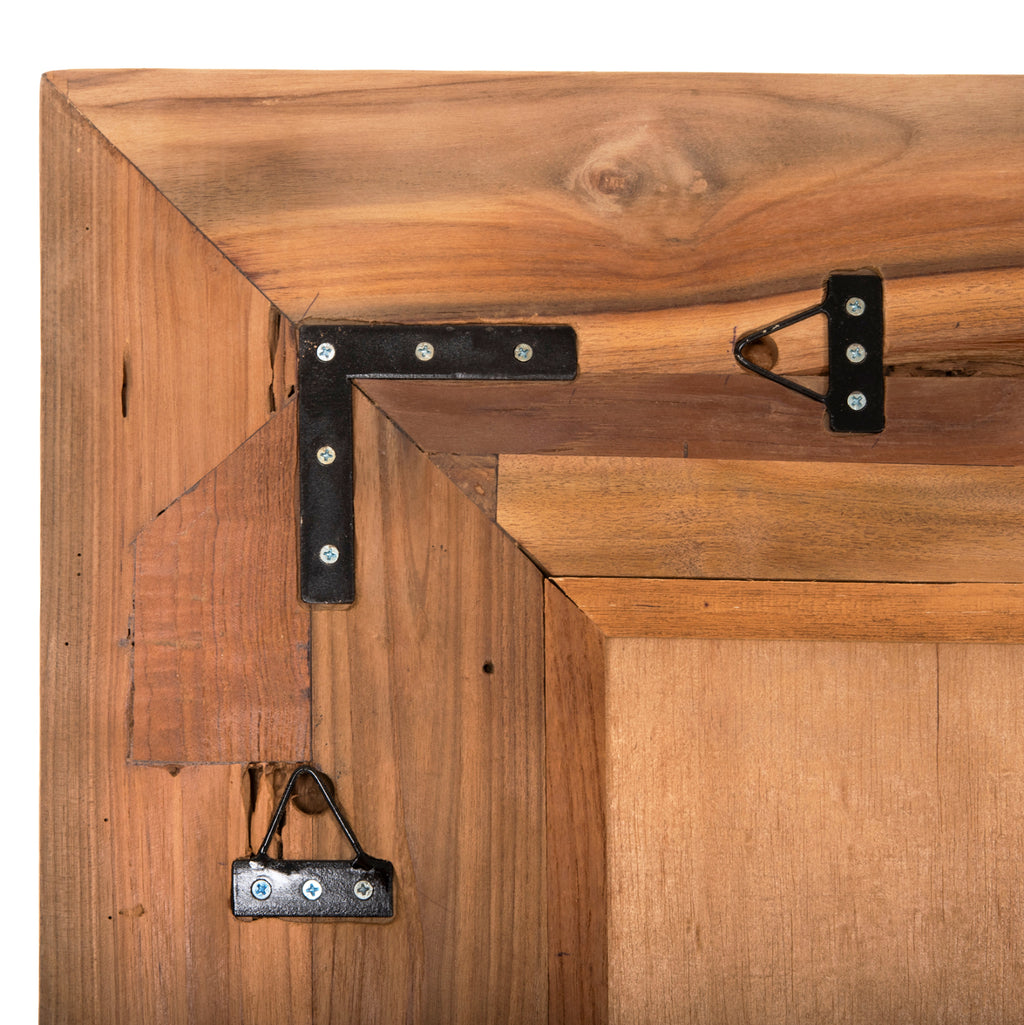 Огледалото YORKSHIRE е наистина красива част от вашия домашен декор! Дизайнът му е класически, като огледалото е разположено в голяма и широка правоъгълна рамка от рециклирано ТИКОВО дърво в естествен цвят. РАЗМЕРИ: 160х230см. (поставени хоризонтално или вертикално) МАТЕРИАЛИ НА КОНСТРУКЦИЯТА: Освен огледалото, останалата част от конструкцията е направена от рециклирана ТИКОВА дървесина. Тикът е най-популярният вид твърда дървесина. Той е жълт до тъмно кафяв на цвят, изключително тежък, с висока якост, устойчив на атмосферни влияния, устойчив на стружки и не се разлага. Често водите на дървото му са силни и прави. Използва се за много вътрешни и външни конструкции. ПОДДРЪЖКА: Фактът, че ТИК е част от твърдата дървесина, го прави много лесен за поддръжка. Всичко, от което се нуждае, е почистване от прах и при необходимост почистване с влажна кърпа. ПРЕДИМСТВА: Огледалото е един от необходимите предмети за дома, но също така е идеално за хотели, Airbnb, трапезарии като декоративен елемент и др. Голямо предимство на това огледало е, че можете да го поставите хоризонтално или вертикално, в зависимост от разположението на вашето пространство! И винаги на най-ниската пазарна цена за своята категория.