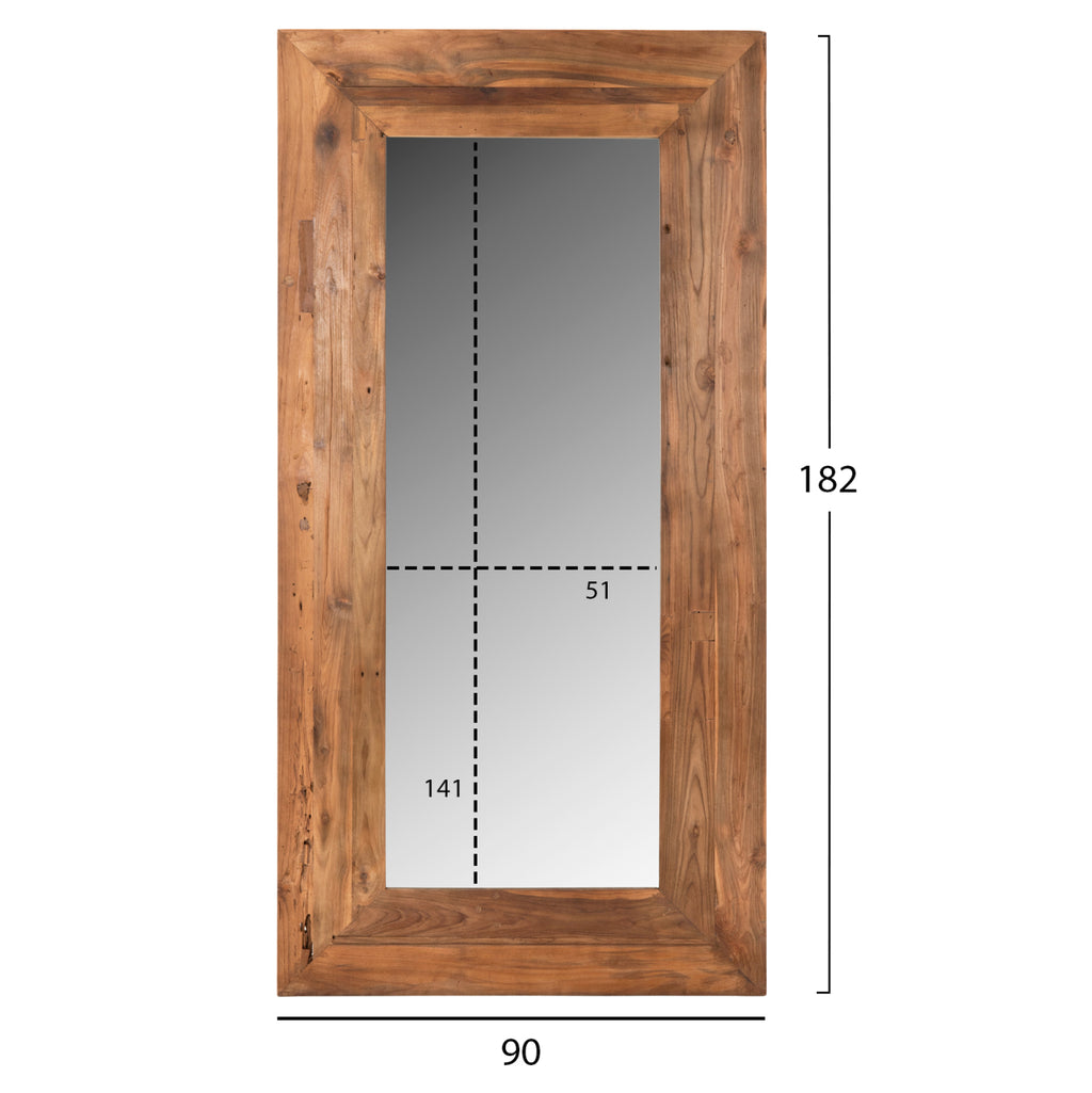 Огледалото YORKSHIRE е наистина красива част от декора на вашия дом! Дизайнът му е класически, като огледалото е поставено в голяма и широка правоъгълна рамка, изработена от рециклирана дървесина TEAK в естествен цвят. РАЗМЕРИ: 90x3x182 см. Огледало: 51x141 см. (поставено хоризонтално или вертикално) МАТЕРИАЛИ ЗА КОНСТРУКЦИЯ: Освен огледалото, останалата част от конструкцията е изработена от рециклирана дървесина TEAK. TEAK е най-популярният вид твърда дървесина. Той е от жълто до тъмнокафяв цвят, изключително тежък, много издръжлив, устойчив на атмосферни влияния, деформация и не се разпада. Често шарките на дървесината му са интензивни и прави. Използва се за различни интериорни и екстериорни конструкции. ПОДДРЪЖКА: Фактът, че TEAK е част от твърдите дървесини, го прави много лесен за поддръжка. Всичко, от което се нуждае, е почистване от прах и, когато е необходимо, с влажна кърпа. ПРЕДИМСТВА: Огледалото е един от необходимите предмети за дома, но е идеално и за хотели, Airbnb, трапезарии като декоративен елемент и др. Голямо предимство на това огледало е, че можете да го поставите хоризонтално или вертикално, в зависимост от разположението на вашето пространство! И винаги на най-ниската цена на пазара за своята категория.