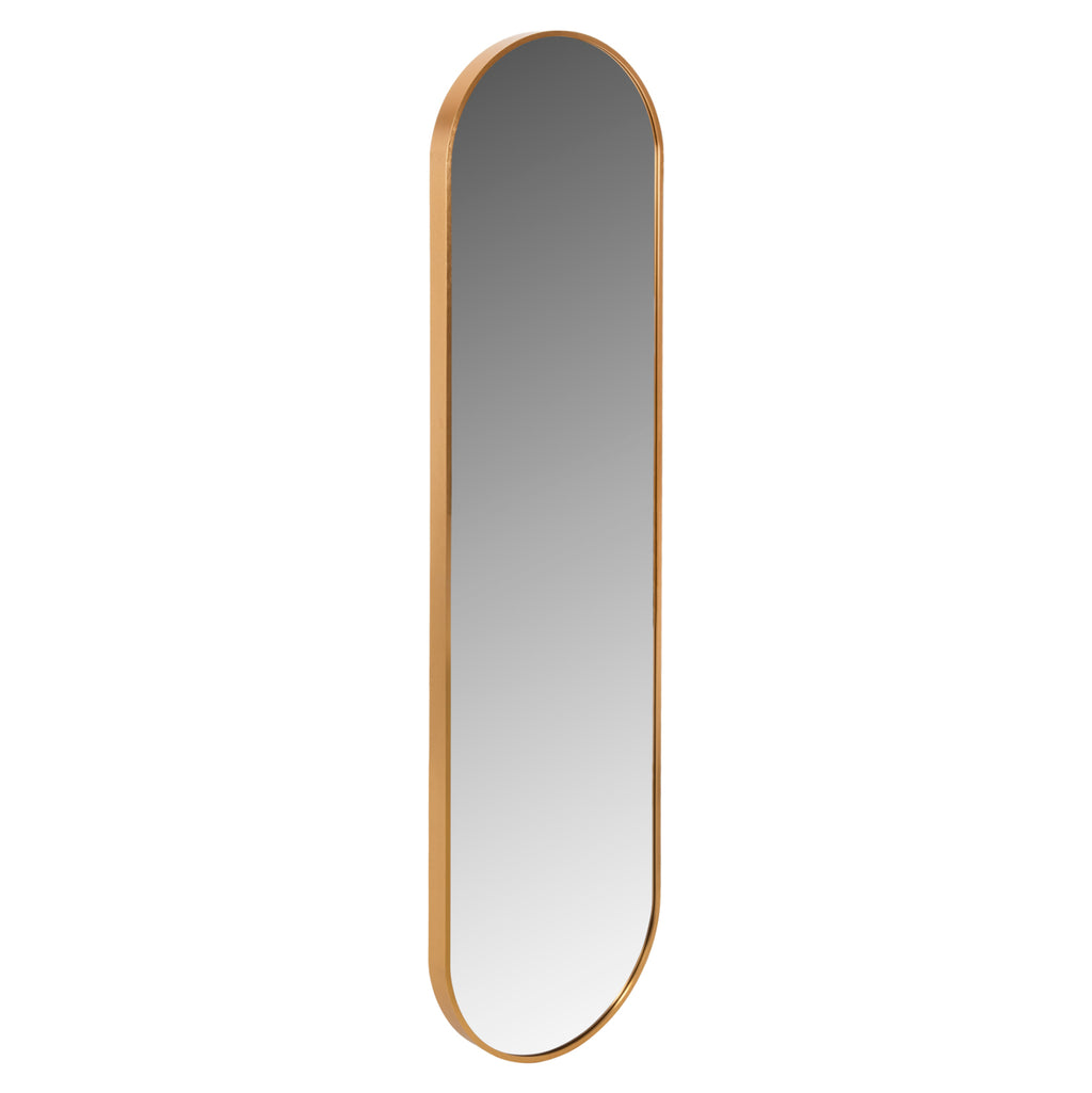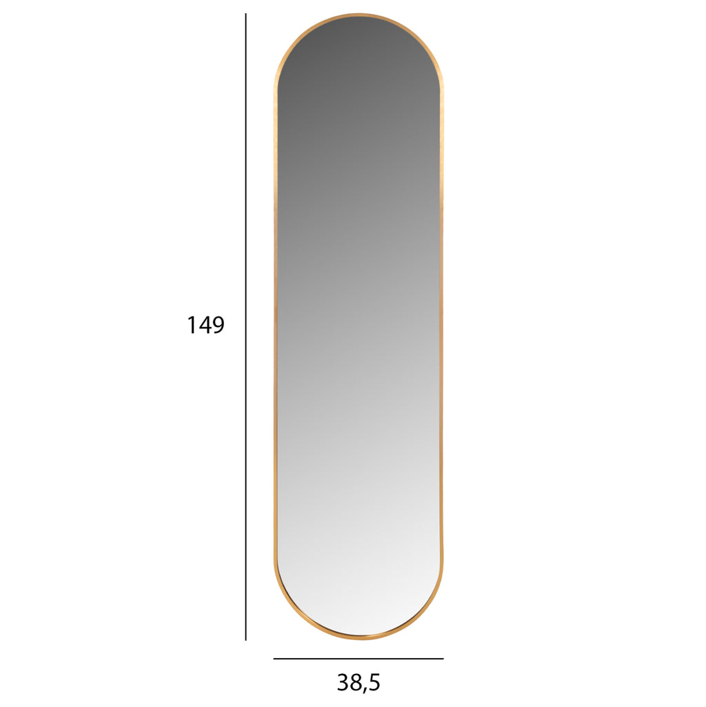 КГ9581.30 е високо и дълго стенно огледало с овална форма със ЗЛАТНА рамка, елегантно и с много задоволителни размери. Полезен "инструмент" за различни стаи на къщата, който ще пасне на вашата декорация, независимо дали е класическа или по-модерна. РАЗМЕРИ: 38.5x4x149H см. КОНСТРУКТИВЕН МАТЕРИАЛ: Рамката на огледалото е алуминиева, което го прави леко и издръжливо.