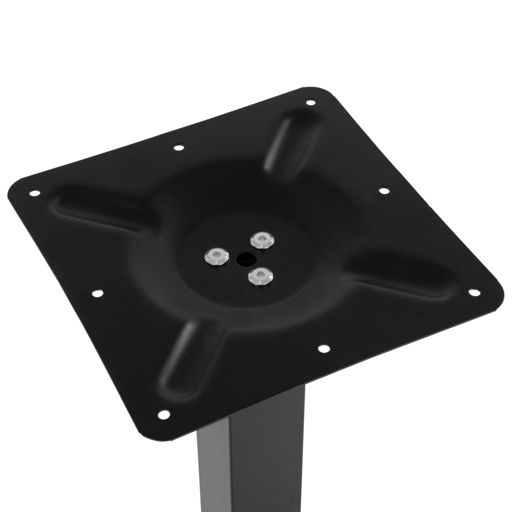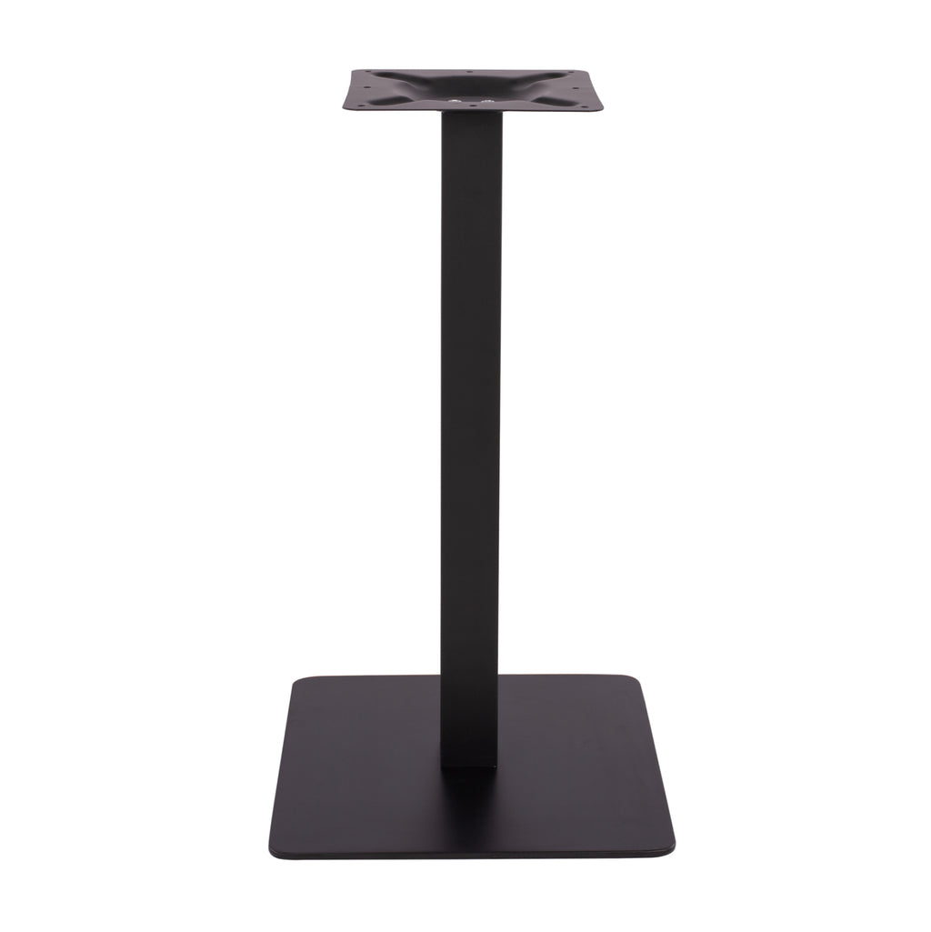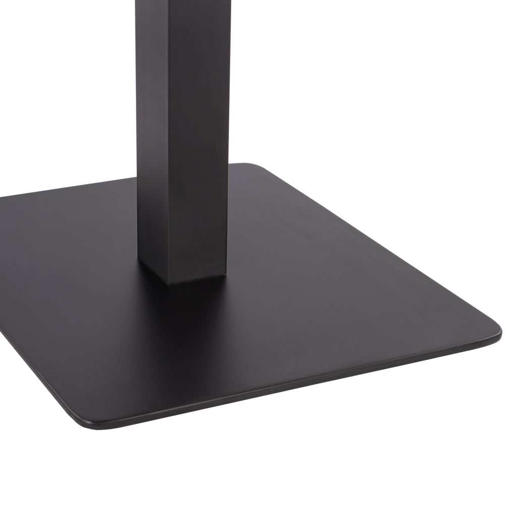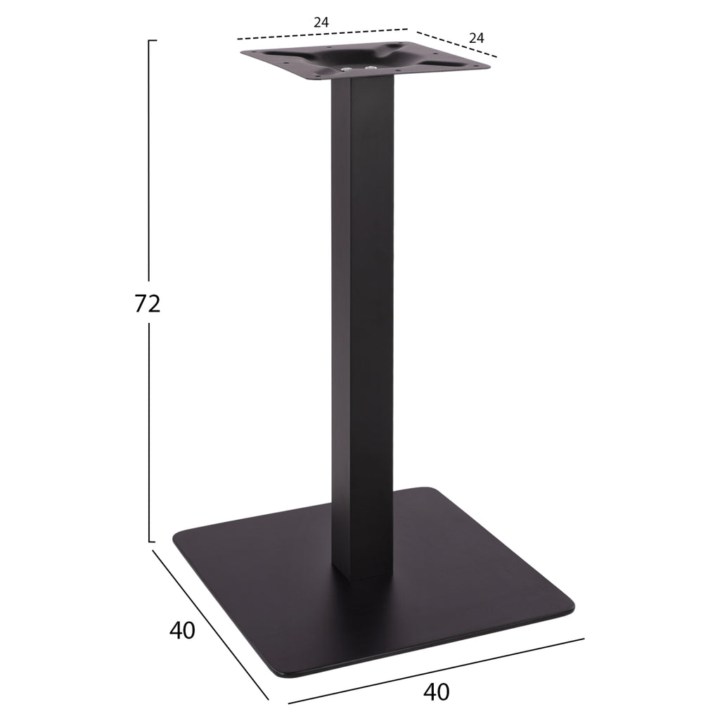 База за маса КГ414.11 изработена от метал в черен матов нюанс, с филц. Размери на опорната повърхност: 24x24 см. Размери на основата: 40х40 см. Размери на тръбата: 6х6 см. Височина на основата: 72 см. Основата е подходяща за повърхност Φ60cm или 60x60cm или Φ70cm или 70x70cm. Важна забележка Внимание: Винтовете за дърво, включени в опаковката за завинтване на капака, може да не са подходящи за избрания от вас капак. Винаги проверявайте височината на винта преди завинтване. **Няма регулатори за регулиране на височината