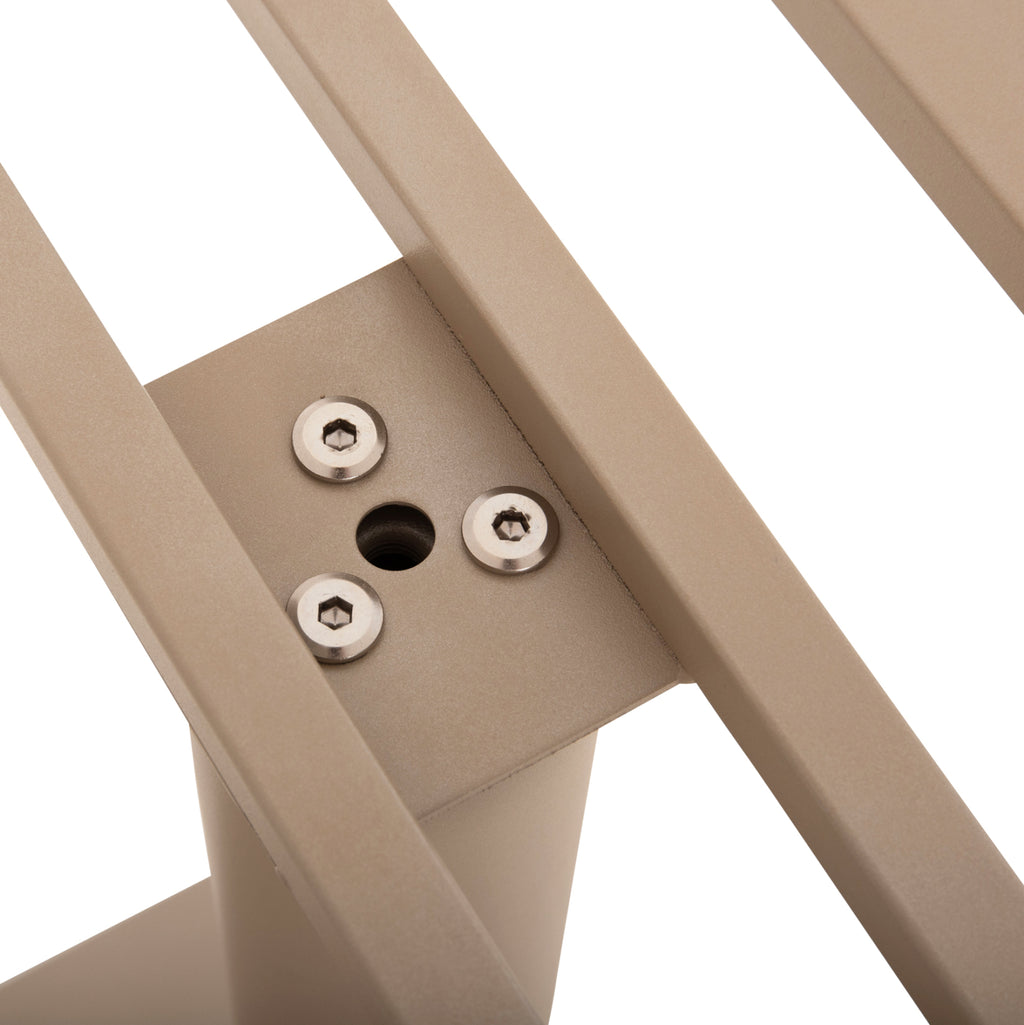 Професионална двойна метална основа за маса в елегантен цвят капучино мат. Модел КГ435.25 е специално проектиран за по-дълги маси и съчетава изключителна стабилност, функционалност и модерен дизайн.