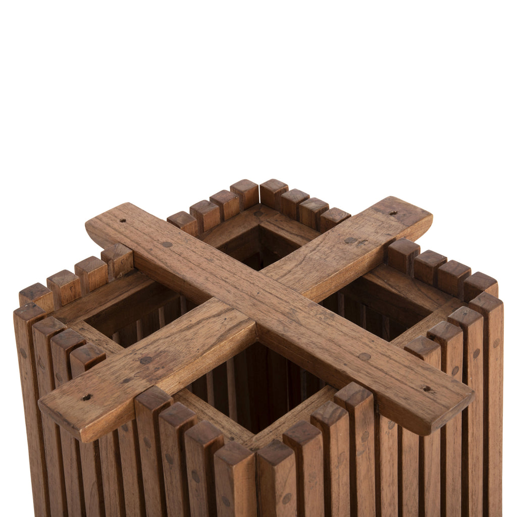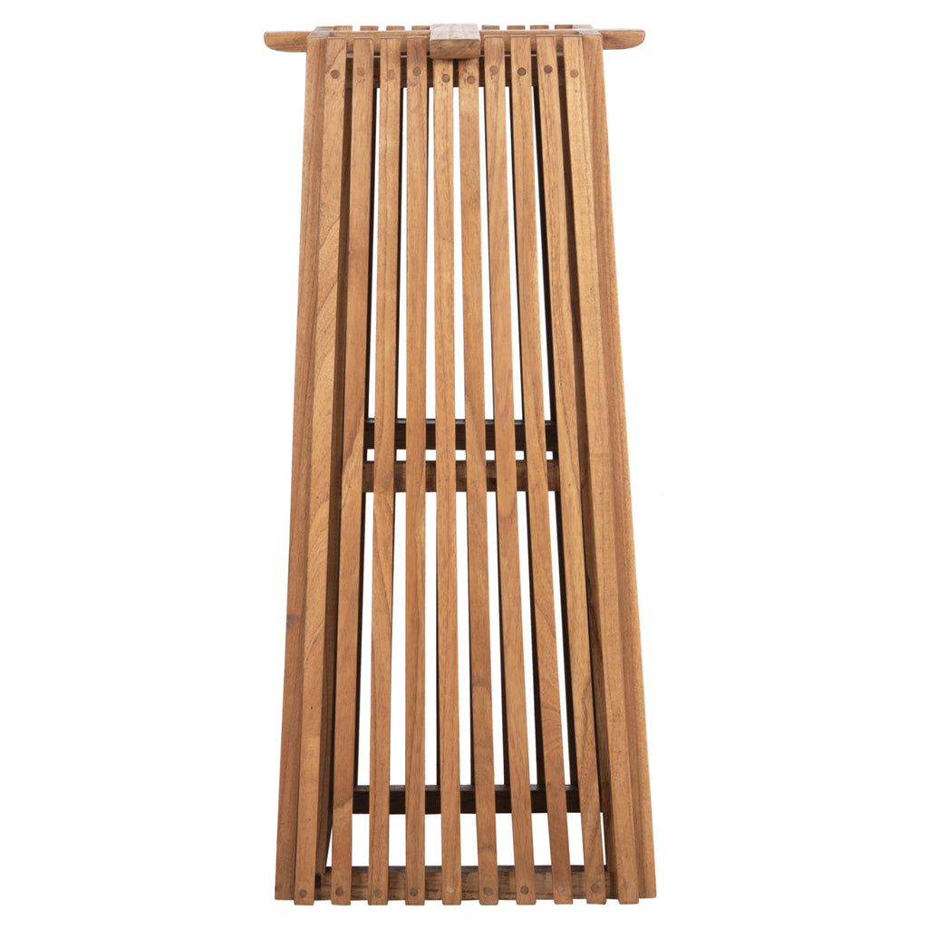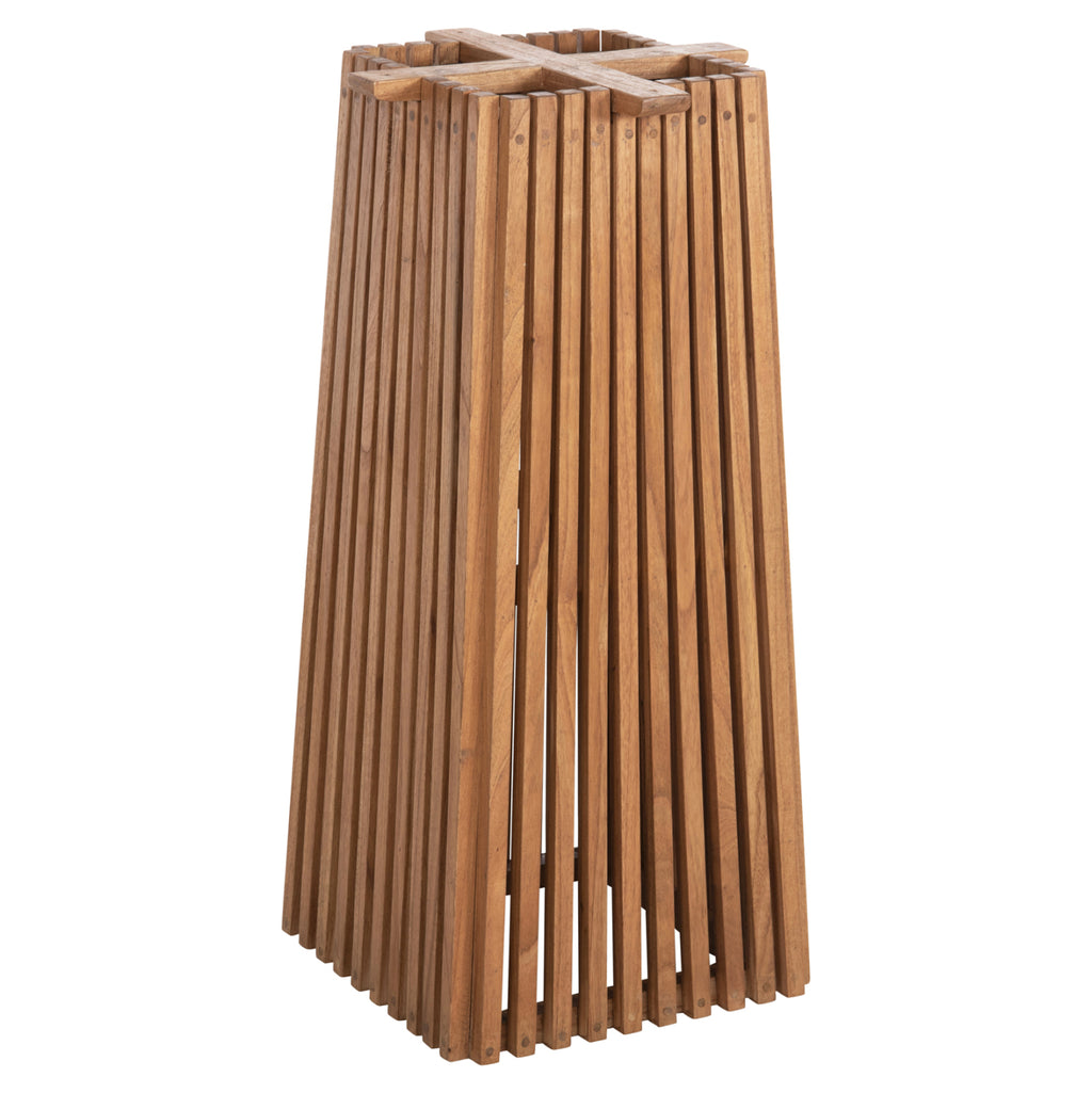 Основа/крака за бар маса за професионално ползване със задоволителни размери в естествен дървесен цвят. Тази основа е дървена конструкция с много греди в пирамидална подредба (с квадратна основа), осигуряваща максимална стабилност и издръжливост за високи бар маси.