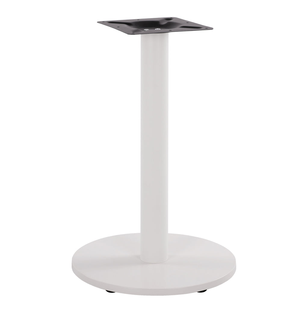 Професионална метална основа за маса в елегантен бял мат цвят. Модел КГ419.12 е специално проектиран за стандартни маси и съчетава стабилност, функционалност и модерен светъл дизайн с кръгла основа.