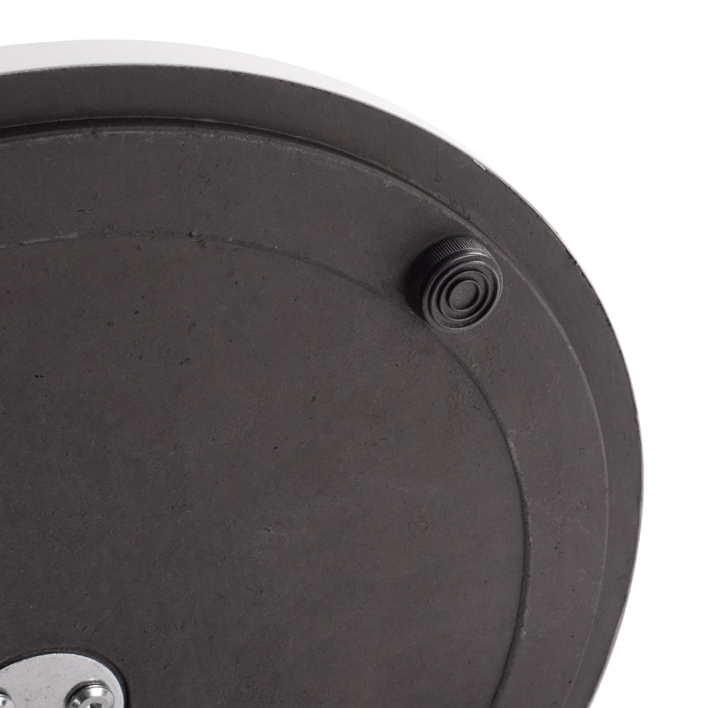 - Кръгла метална основа с цимент: Долната част на основата е направена от метал и цимент, което я прави изключително издръжлива и стабилна