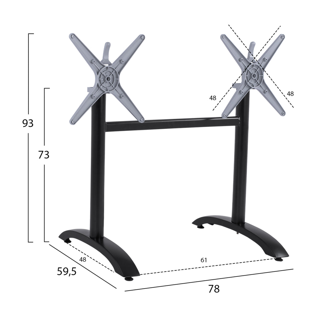 Основа за маса алуминиева в черен цвят, специално проектирана за големи правоъгълни маси. Двойната колонна конструкция осигурява отлична стабилност и равномерно разпределение на теглото.