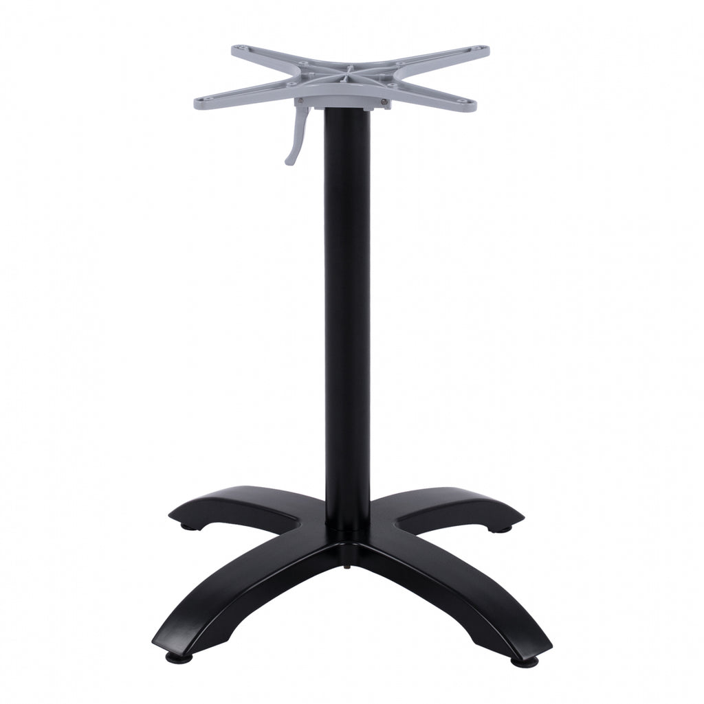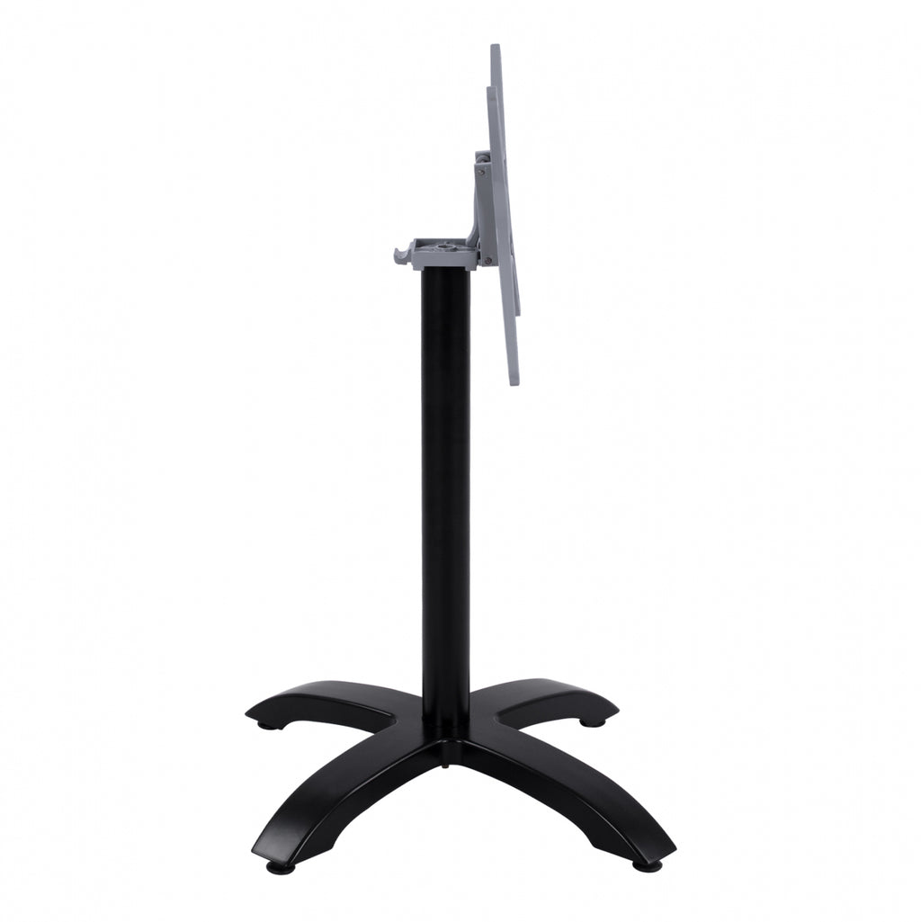 База за маса от алуминий в черен матов нюанс с регулатори. Сгъваемата конструкция позволява минимално място за съхранение, което я прави идеална за мобилни приложения и сезонна употреба.