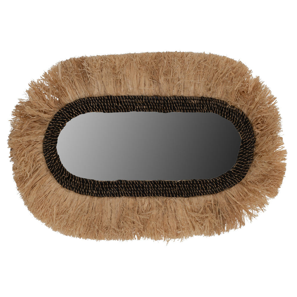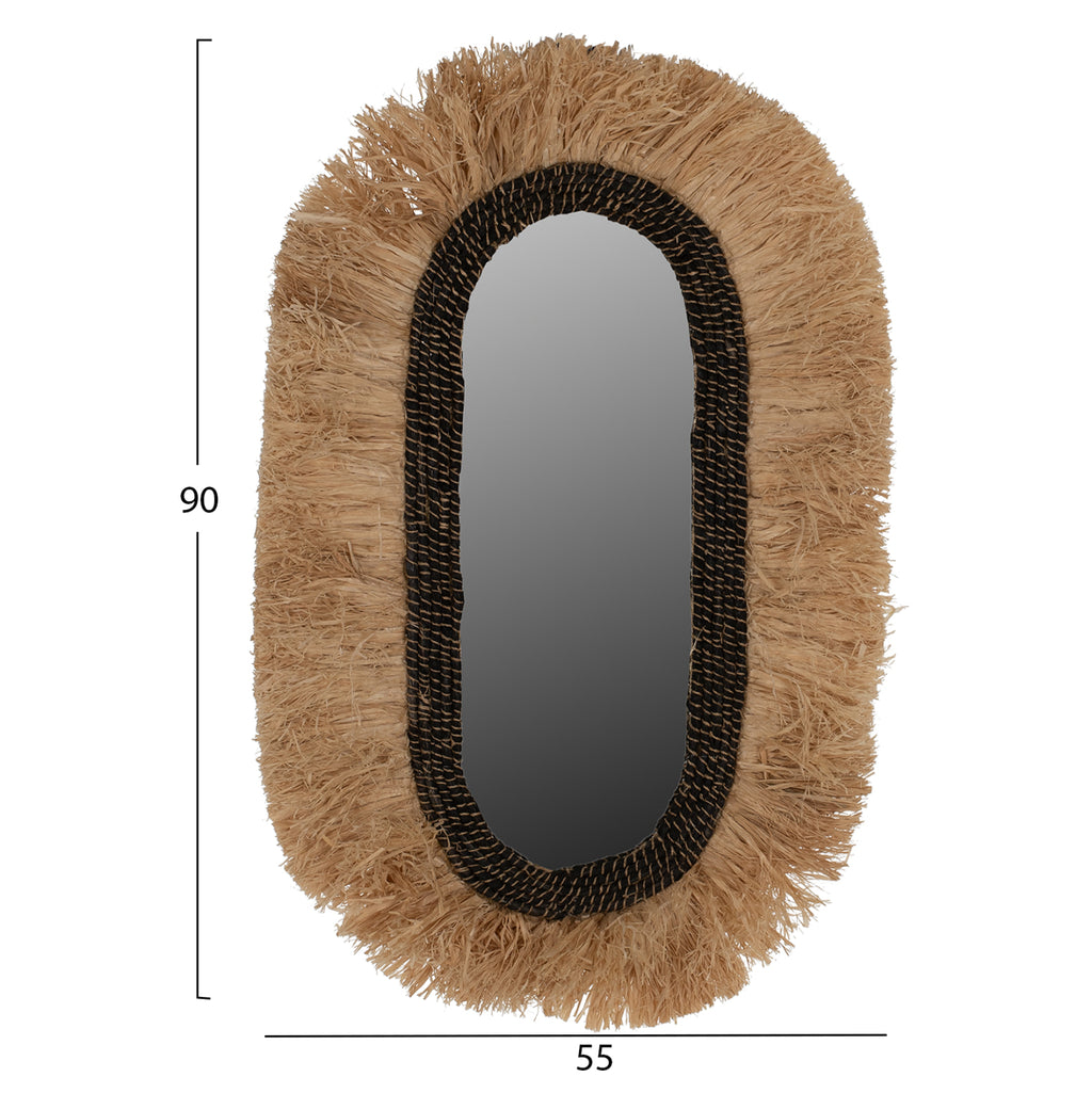 Овалното огледало MH7745 е наистина впечатляващо парче в декорацията на вашето пространство! Дизайнът му е красив и семпъл с рамка, изработена от сизалови влакна в естествен цвят и подвързия близо до огледалото с рециклирани конопени влакна от манила в черно. Декоративно огледало, което ще придаде различна естетика на вашето пространство и в същото време ще бъде красива опорна точка. РАЗМЕРИ: 55x4x90H см. Разстояние от стената: 4см. МАТЕРИАЛИ ЗА ИЗРАБОТКА: В допълнение към огледалото, рамката на огледалото в по-голямата си част е изработена от специално обработени сизалови влакна. Сизал (Agave sisalana) е вид цъфтящо растение, произхождащо от южно Мексико, но сега широко култивирано в много други страни. От листата му се получава твърдо влакно, което се използва за направата на въжета и различни други продукти. Терминът сизал може да се отнася или до общото име на растението, или до влакното, в зависимост от контекста. Сизаловото влакно традиционно се използва за въжета и канап и има много други приложения като хартия, плат, обувки, шапки, чанти, килими, геотекстил и т.н. Използва се също като армировъчно влакно за композитни продукти от фибростъкло, каучук и бетон. ПОДДРЪЖКА: Необходимо е само почистване от прах и при необходимост почистване с влажна кърпа. ПРЕДИМСТВА: Огледалото MH7745 е впечатляващо на външен вид и пленява всеки, който го погледне. Идеален е за дома, но също така и за професионални пространства като хотели, Airbnb, зони за хранене като декоративен елемент и др.