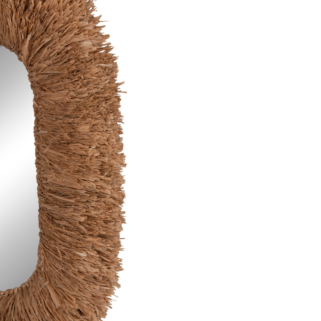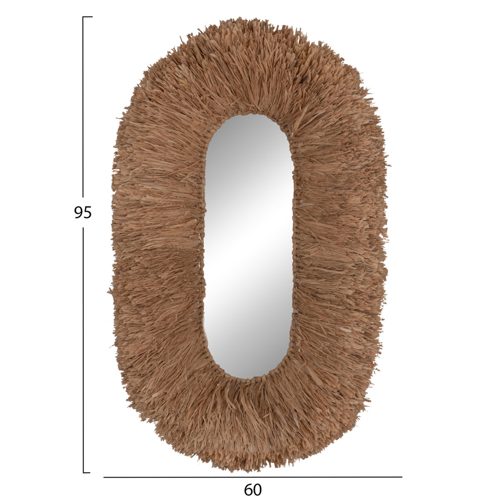 Това овално огледало е наистина зашеметяващо парче за украса на вашето пространство! Дизайнът му е красив и семпъл с рамка от влакна от сизал в естествен цвят и ще придаде различна естетика на вашето пространство, като в същото време ще бъде красива фокусна точка. Идеален за дома, но и за професионални пространства като хотели, Airbnb, ресторанти. РАЗМЕРИ: 95х60х15 (дебелина)см. МАТЕРИАЛИ ЗА ИЗРАБОТКА: В допълнение към огледалото, рамката на огледалото в по-голямата си част е изработена от специално обработени сизалови влакна. Сизал (Agave sisalana) е вид цъфтящо растение, произхождащо от южно Мексико, но сега широко култивирано в много други страни. От листата му се получава твърдо влакно, което се използва за направата на въжета и различни други продукти. Терминът сизал може да се отнася или до общото име на растението, или до влакното, в зависимост от контекста. ПОДДРЪЖКА: Необходимо е само почистване от прах и при необходимост почистване с влажна кърпа. ** Цветопредаването на продукта може леко да се различава от неговото фотографско представяне на вашия екран.